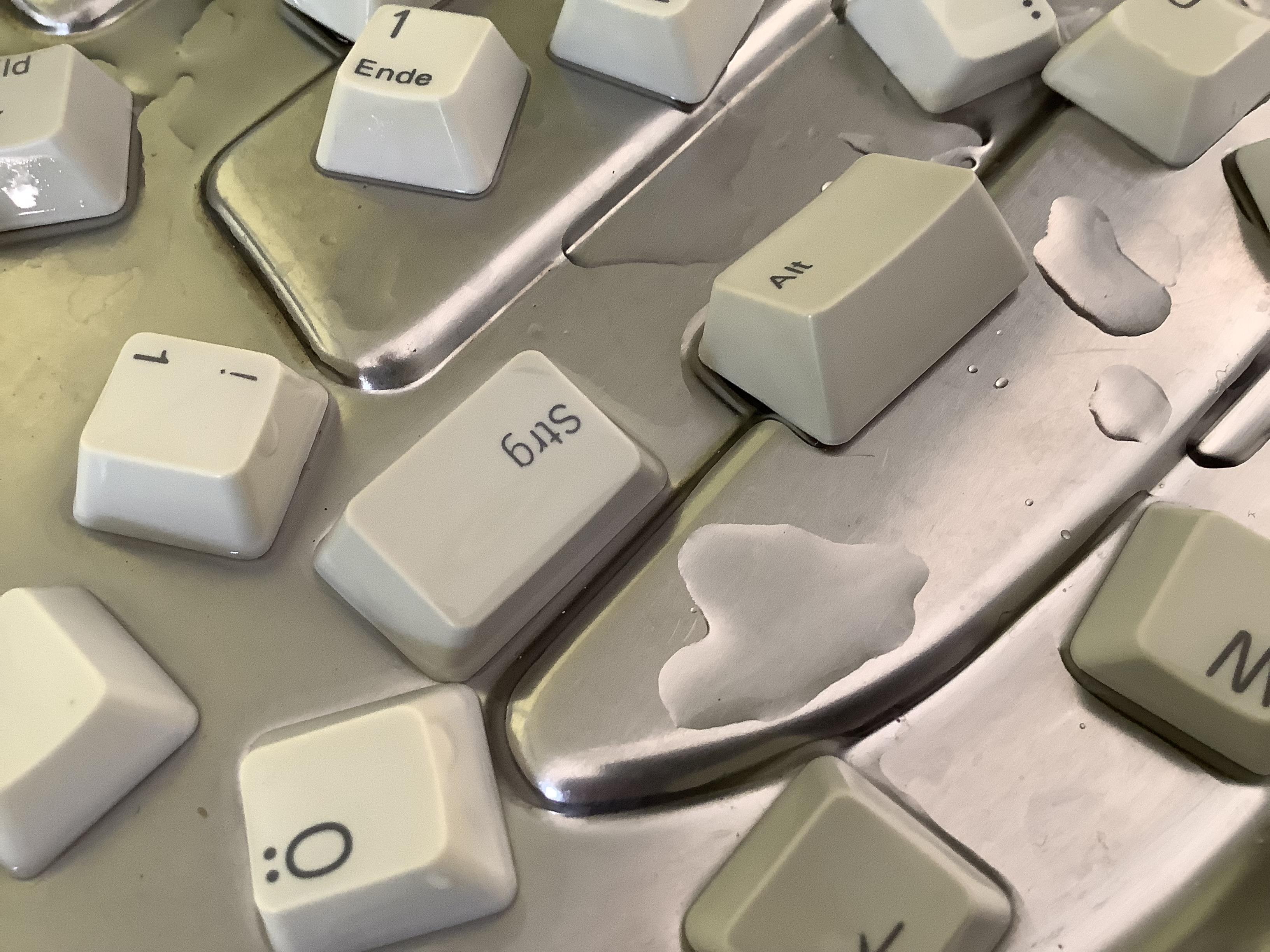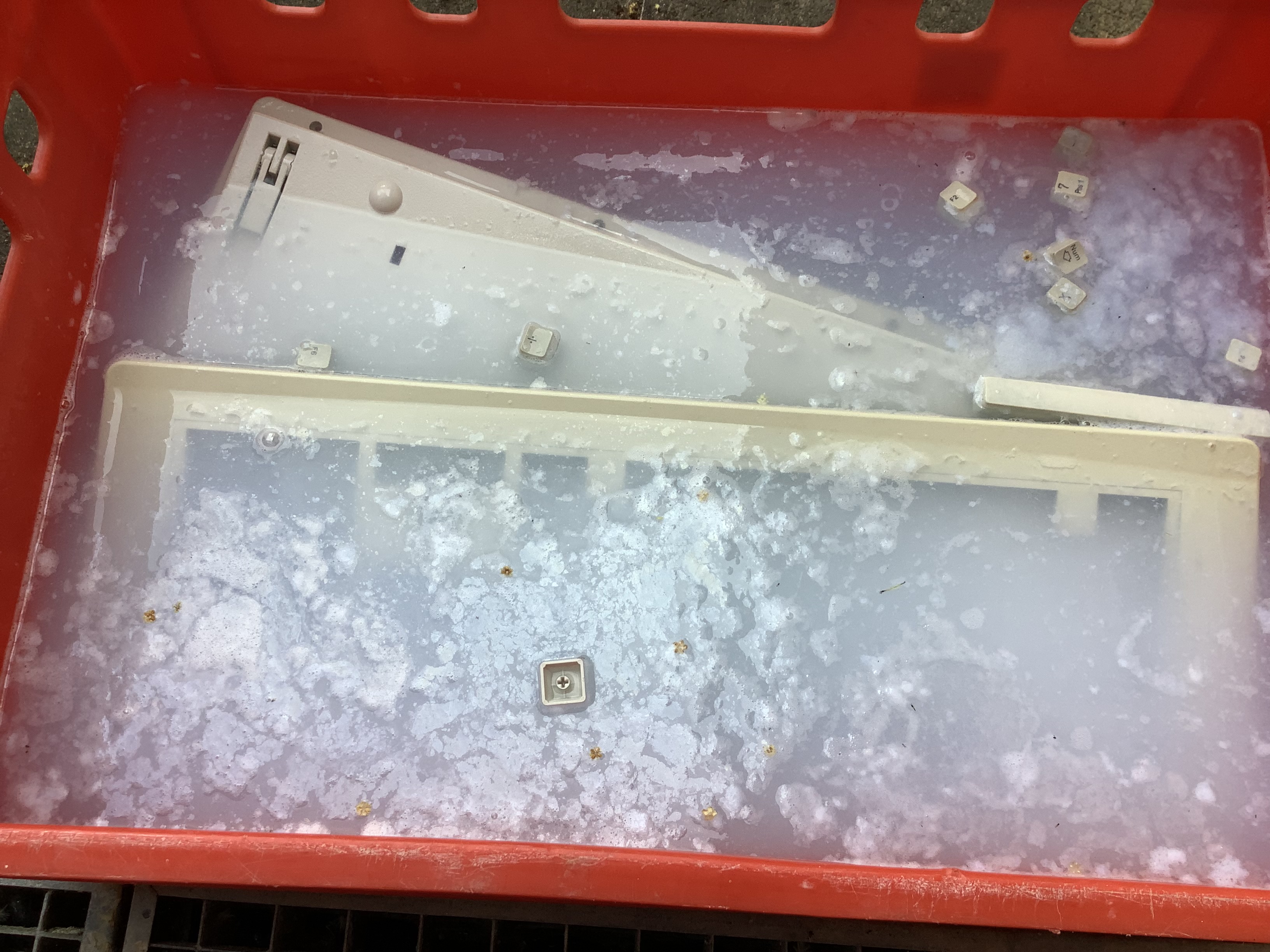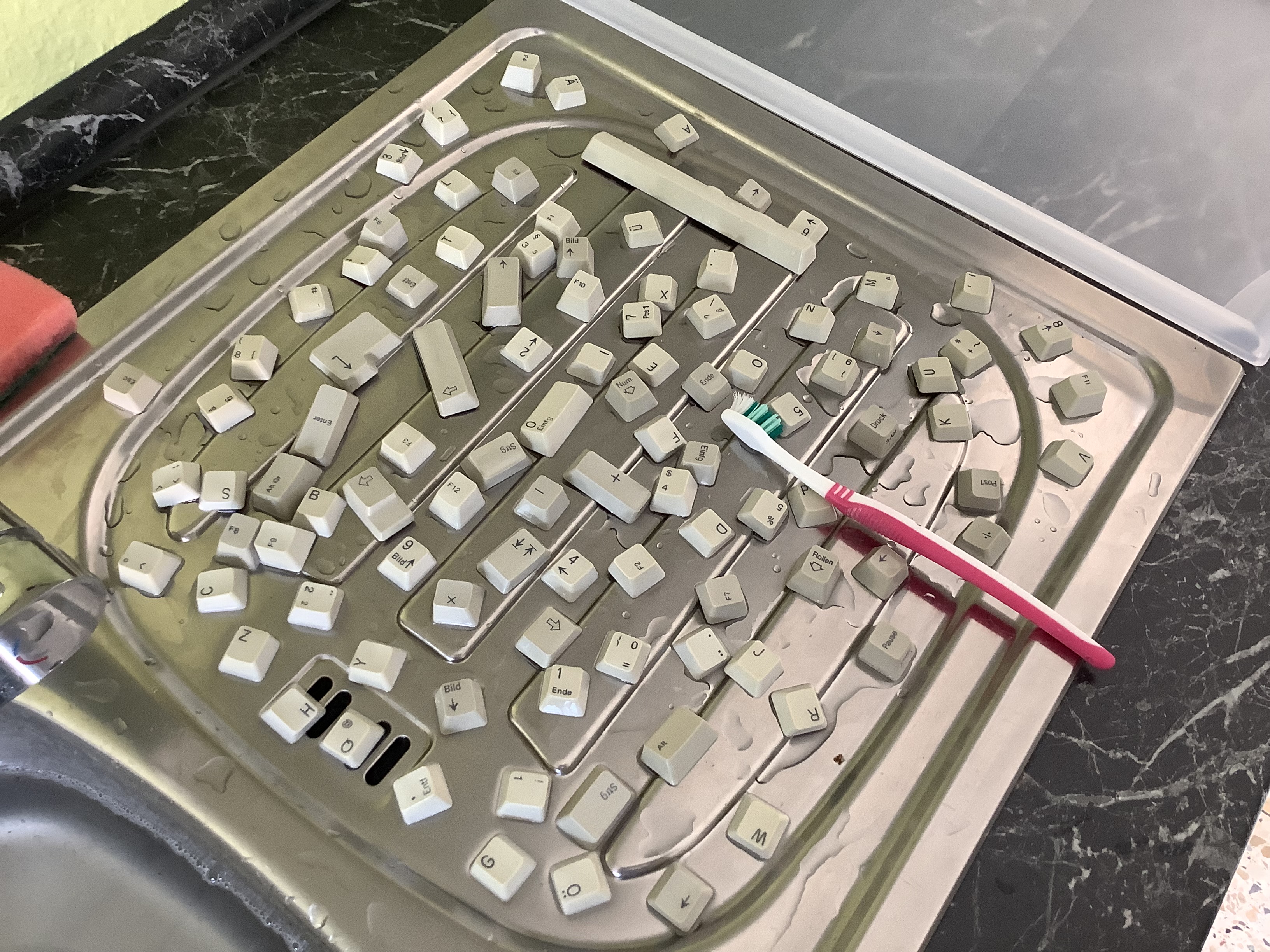 Die Taste war unversehrt und so entschloss ich mich dann eine Plastikwanne mit Wasser zu füllen und soviel Mittel dazugegeben, das es sich gerade noch
