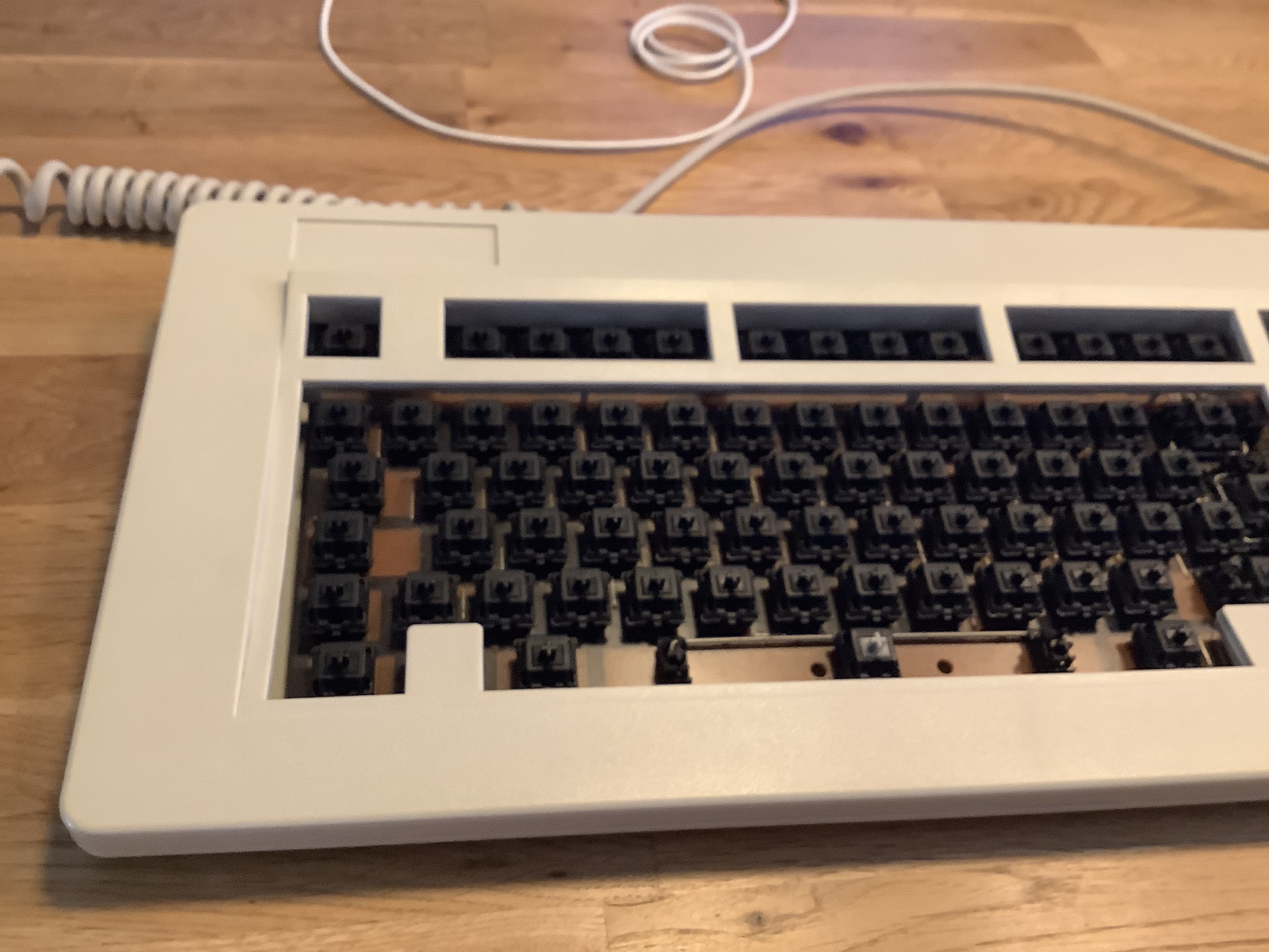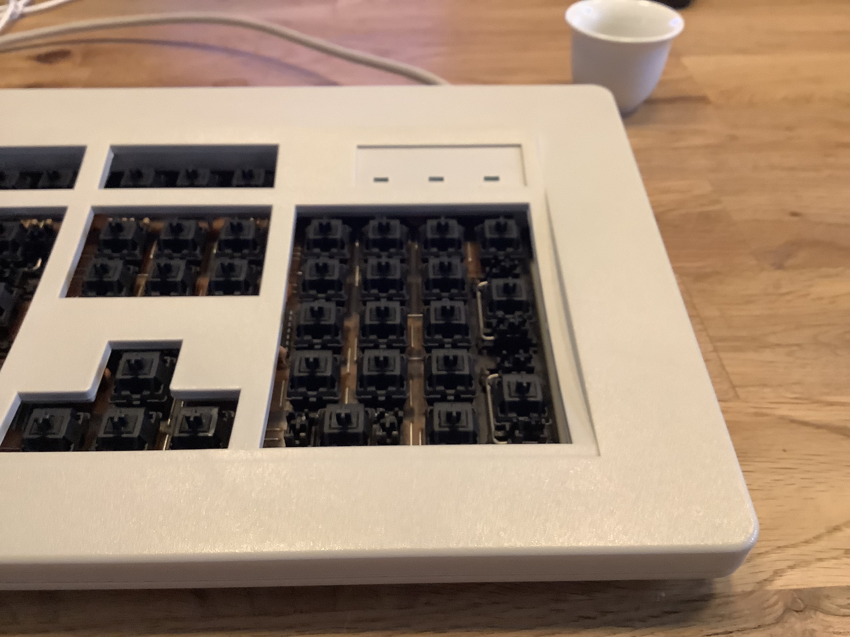 Der Zusammenbau ist nicht wirklich schwierig. Zuerst das Logikboard der Tastatur in die Unterschale einsetzen, die Anschlußleitung befestigen und korrekt