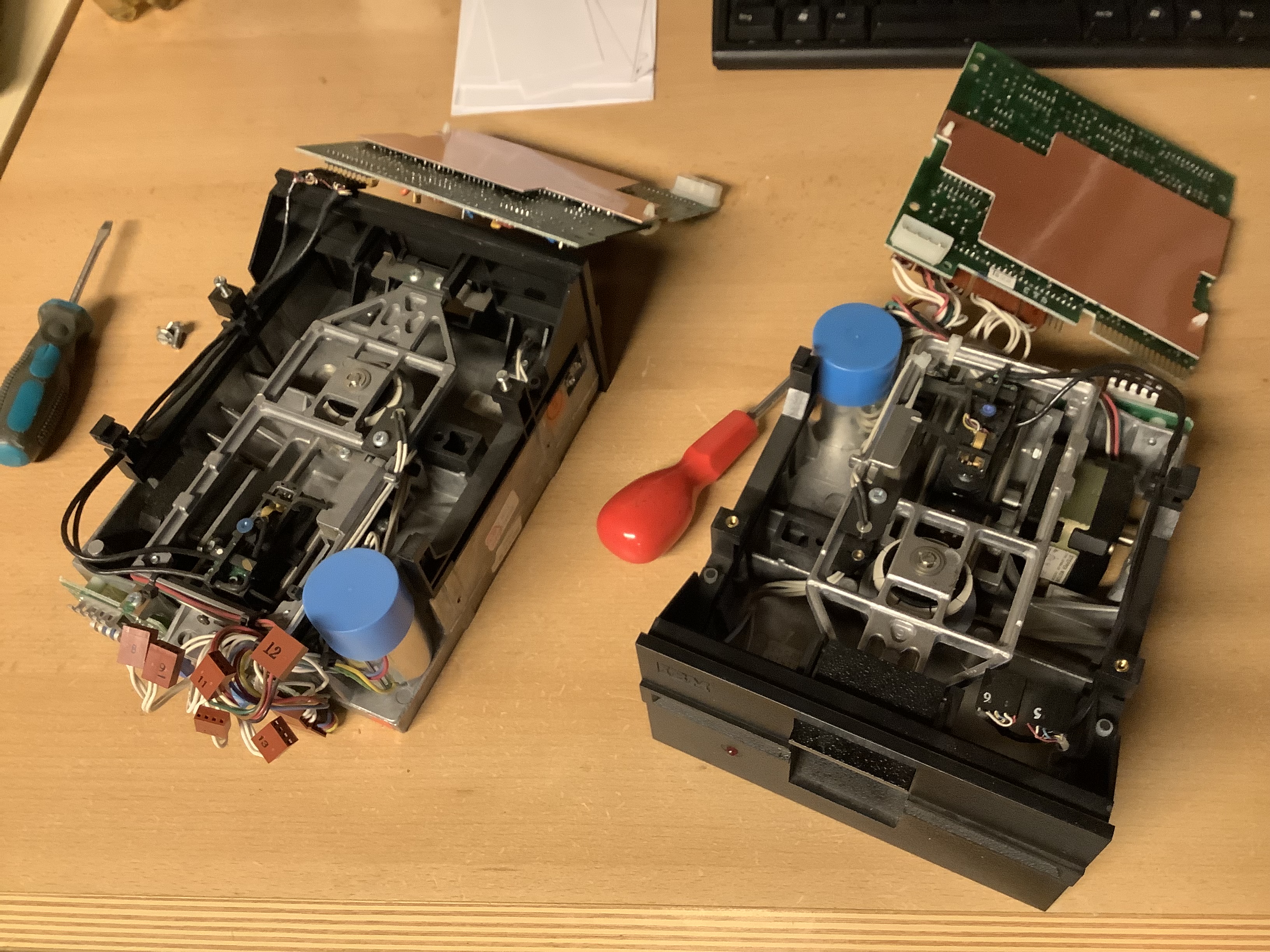 Auf dem Folgebild 2 ist ein Blick in das innere der Laufwerke möglich. Der Motor befindet sich unter der blauen Abdeckkappe, die sich einfach