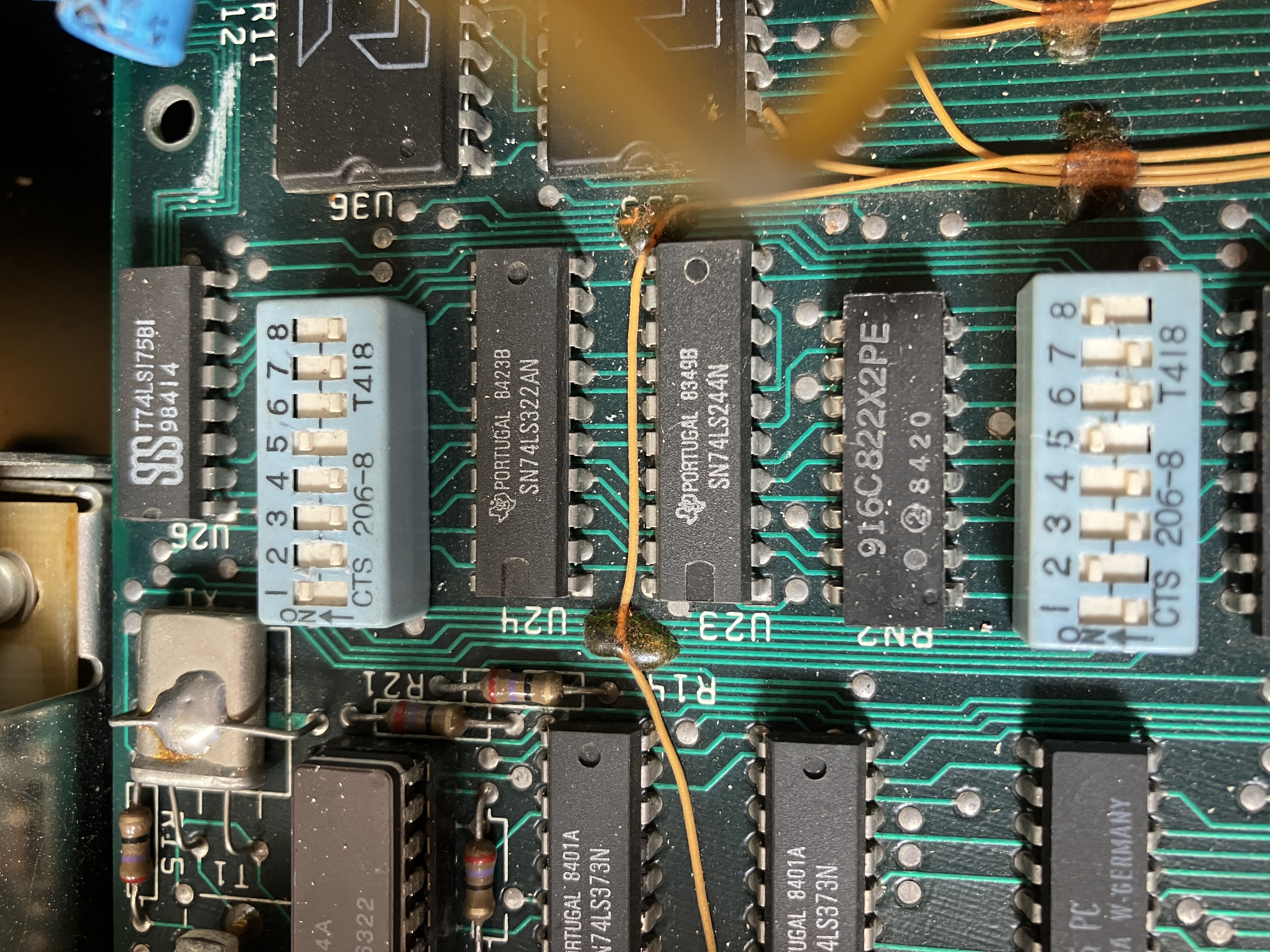 das Mainboard läuft kann man dann die provisorischen Reparaturen nachbessern. Das 5150 Board ist wohl sehr empfindlich. Insbesondere beim