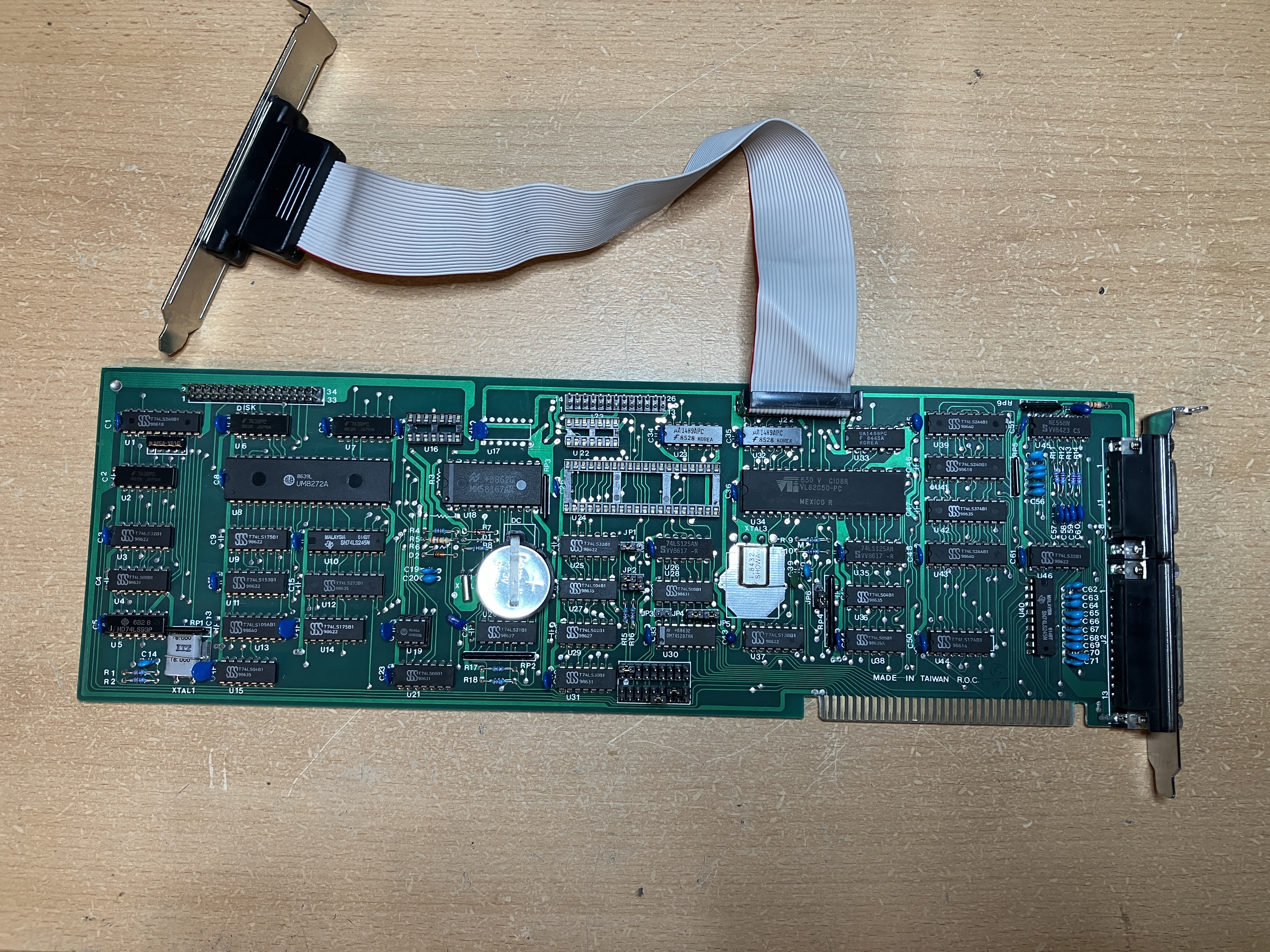 Eine sogenannte Multifunktions I/O Karte die neben der Hardware Uhr auch noch einen Floppy Controller, eine parallele, zwei serielle Schnittstellen und einen