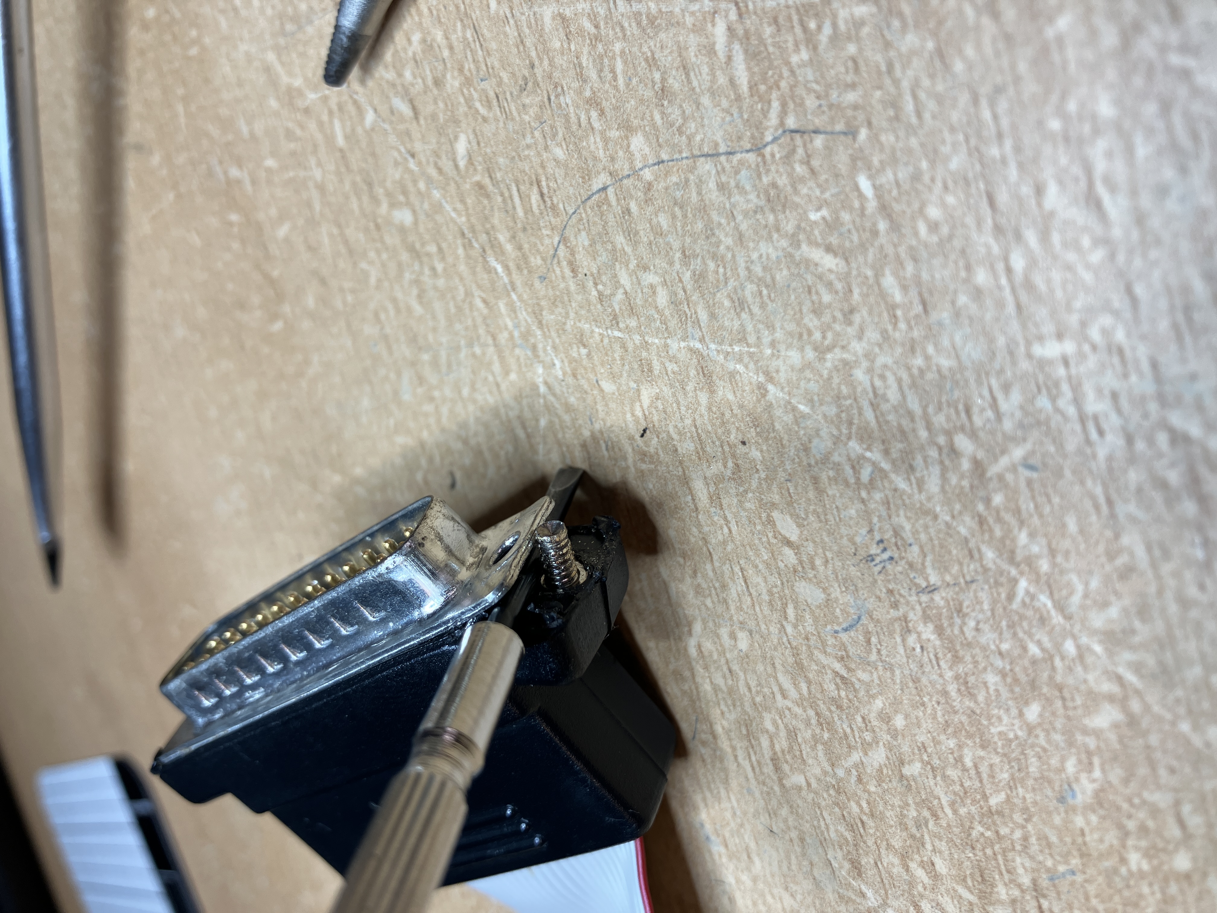 Breakout Kabel für den seriellen Anschluss zu sehen. Bei diesem war ein Schraubenkopf abgebrochen der eben normalerweise auch die Schraube für den seriellen