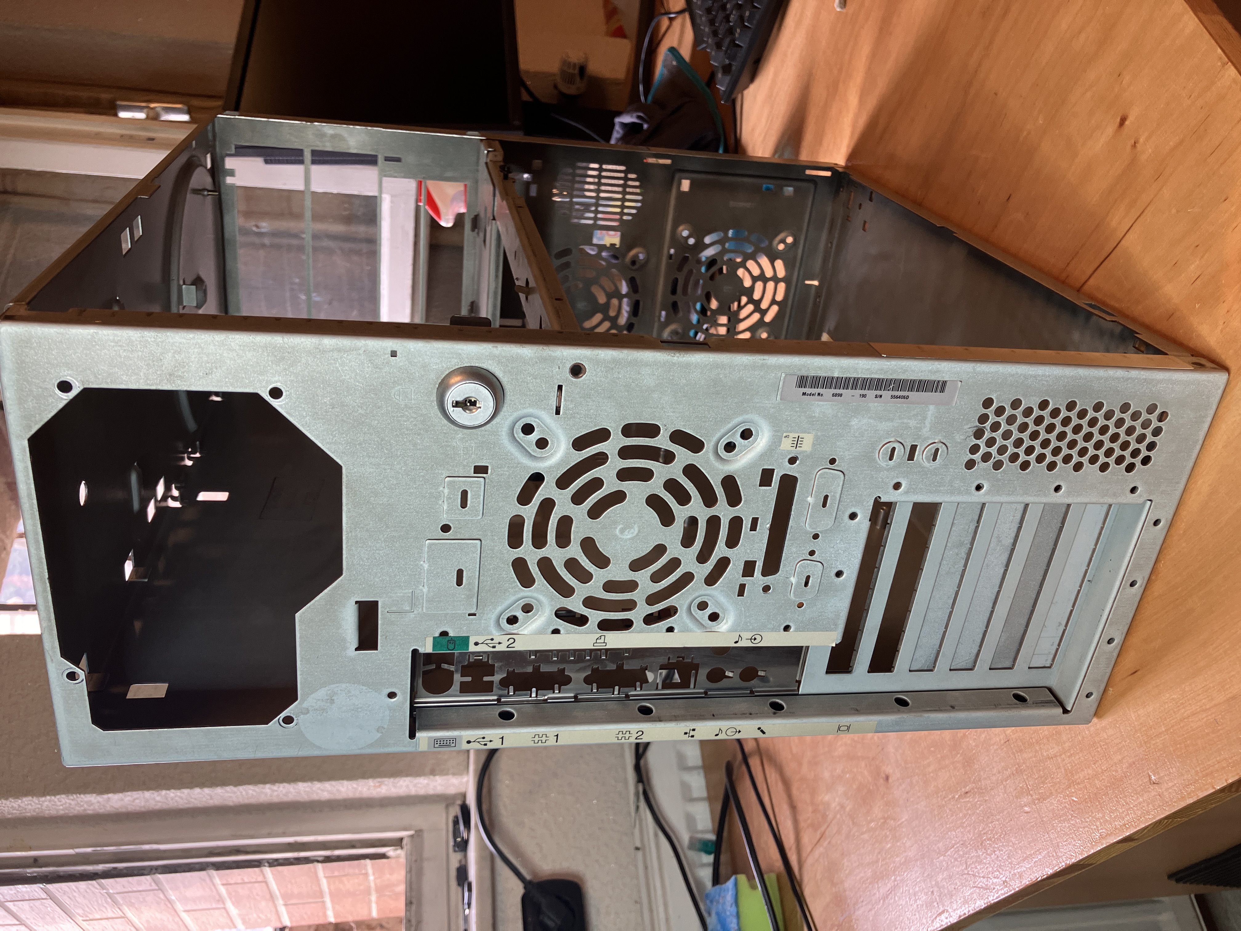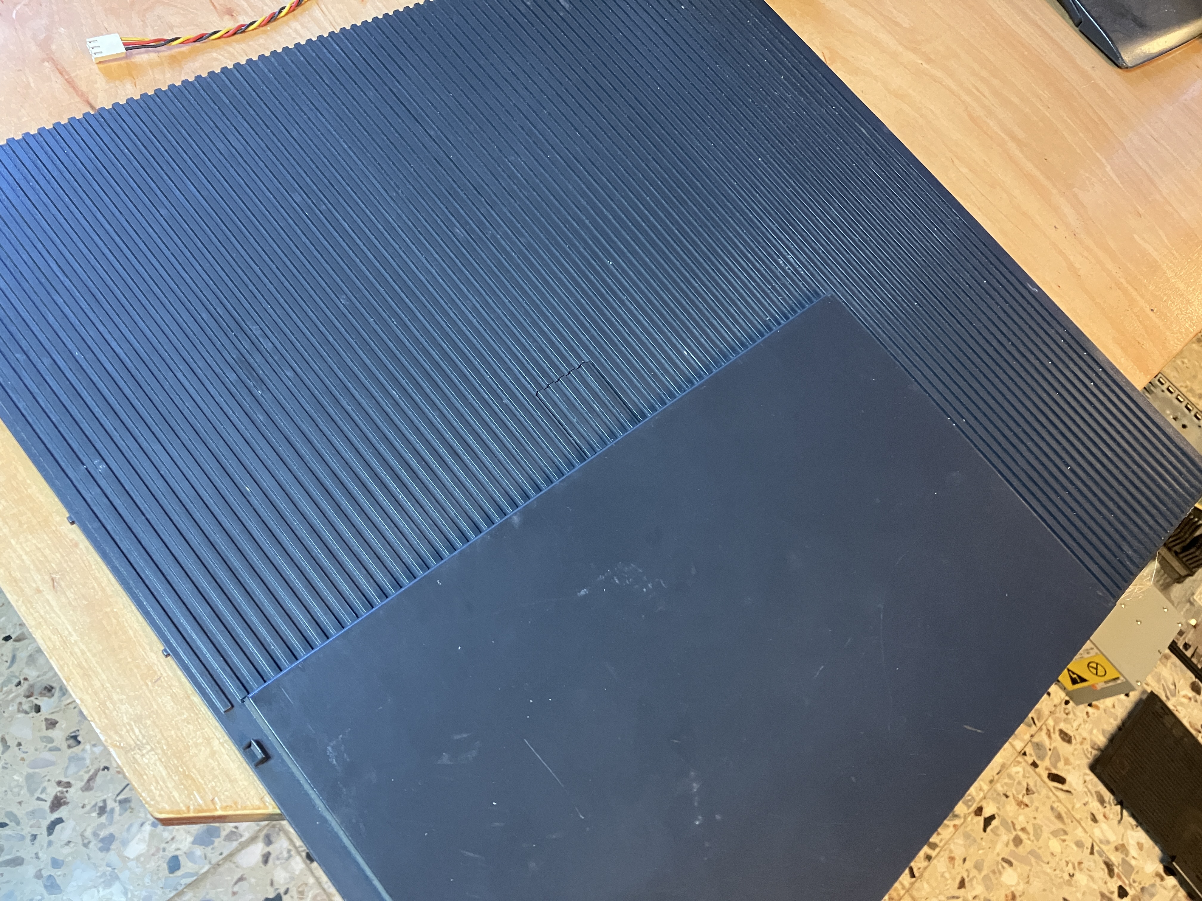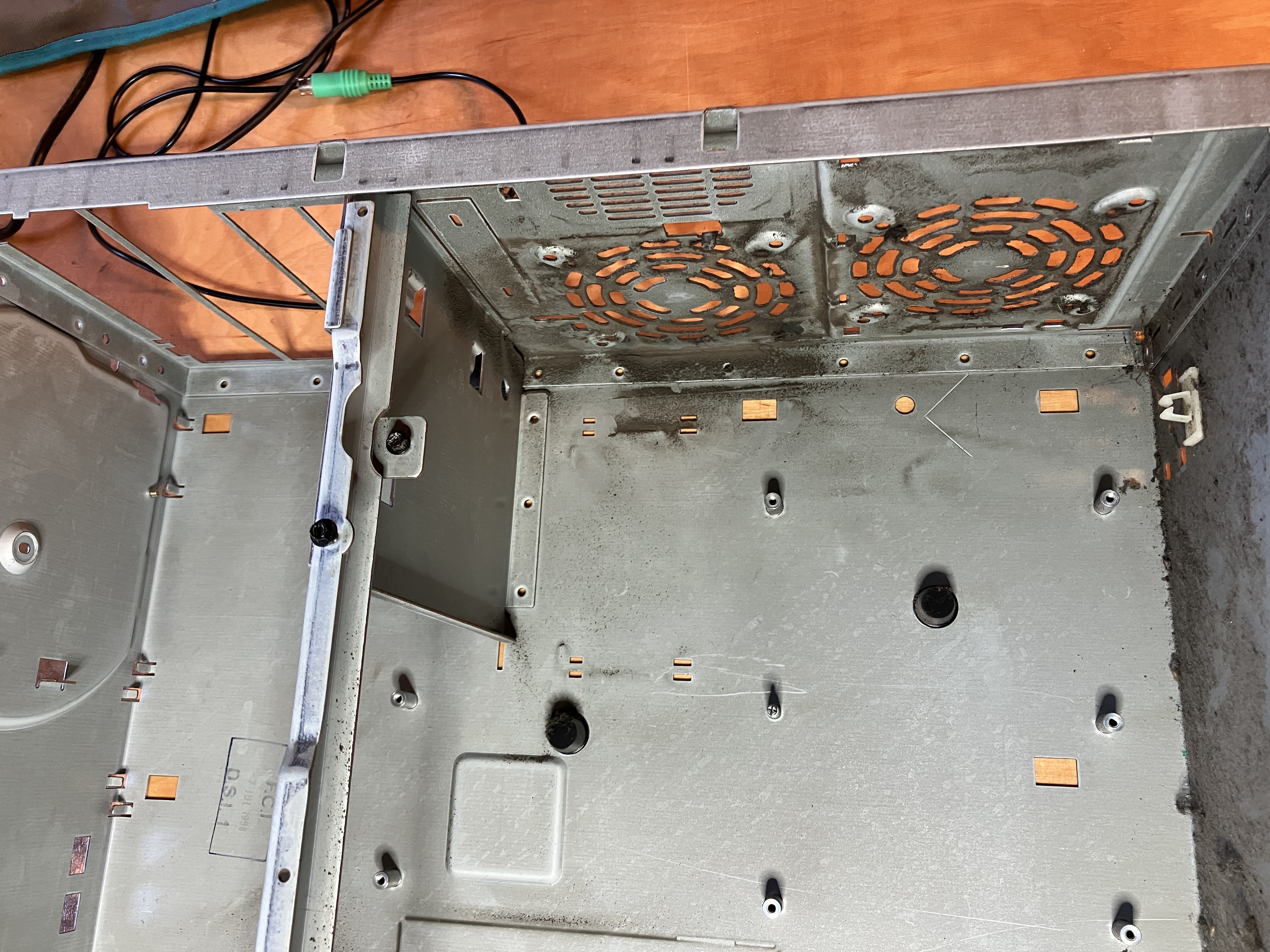 Hier 3 Aufnahmen im "Öffnungszustand" direkt nach dem Abholen. Etwas Staub hat sich schon angesammelt. Auf Folgebild 1 ist das Mainboard Layout gut zu sehen,