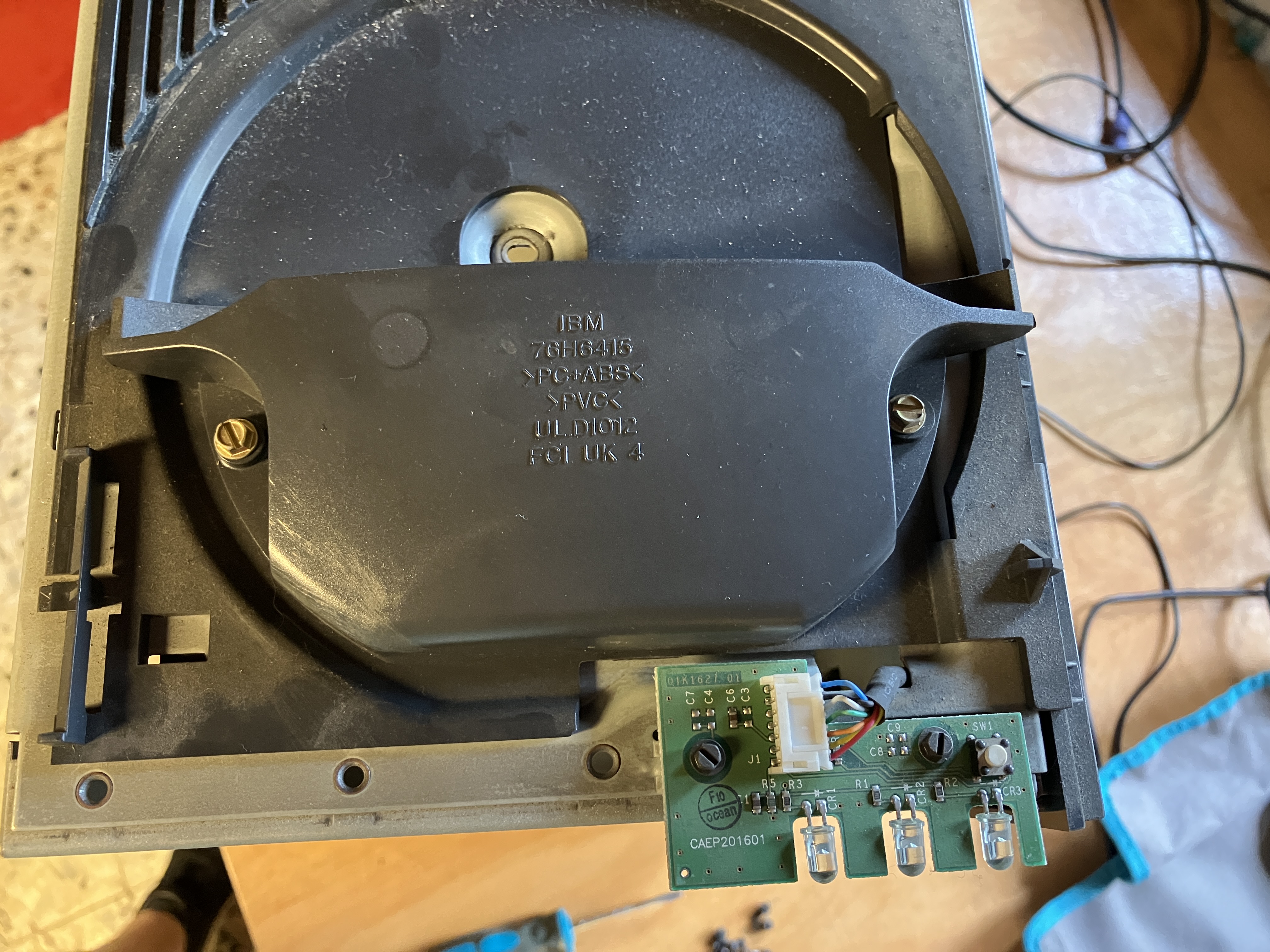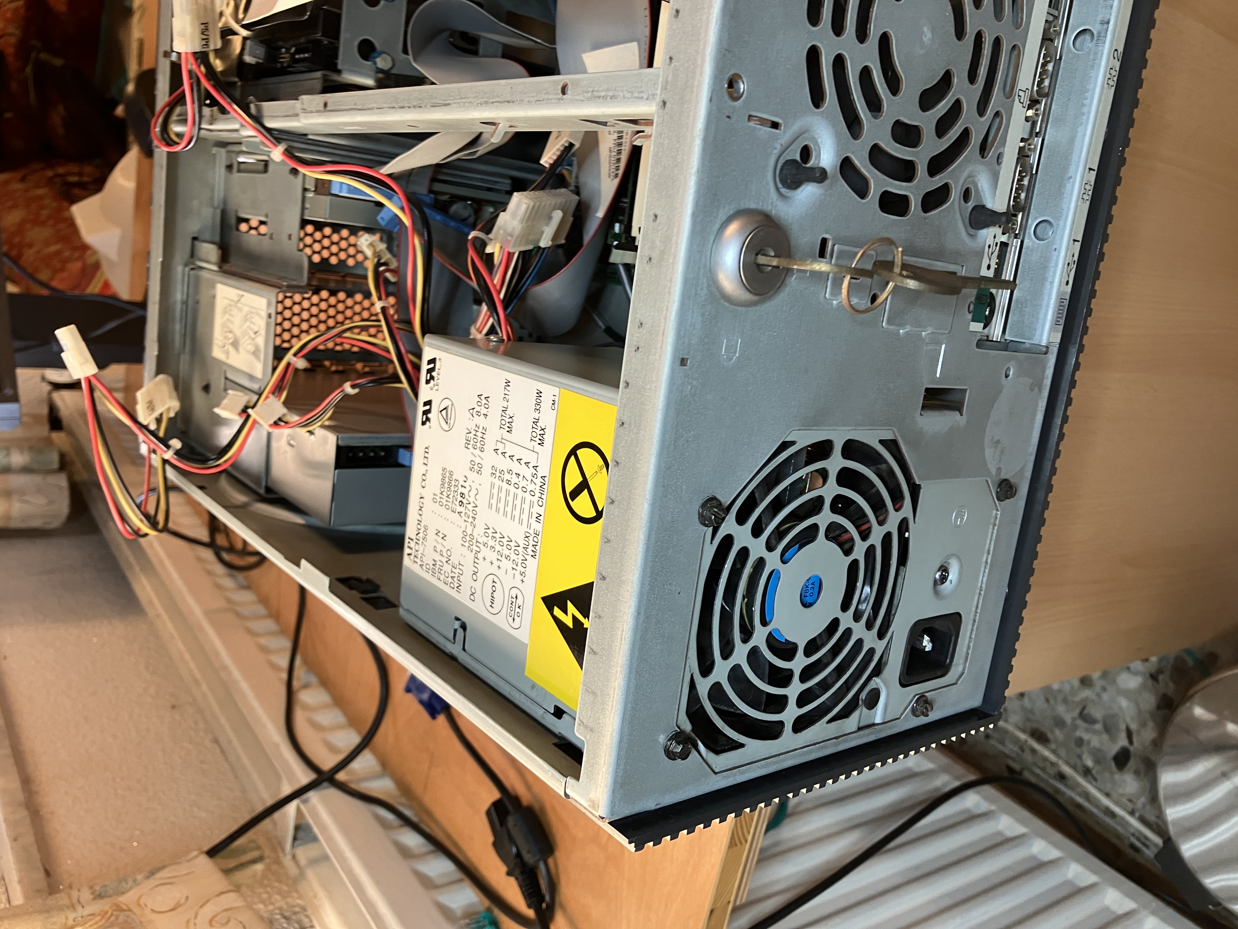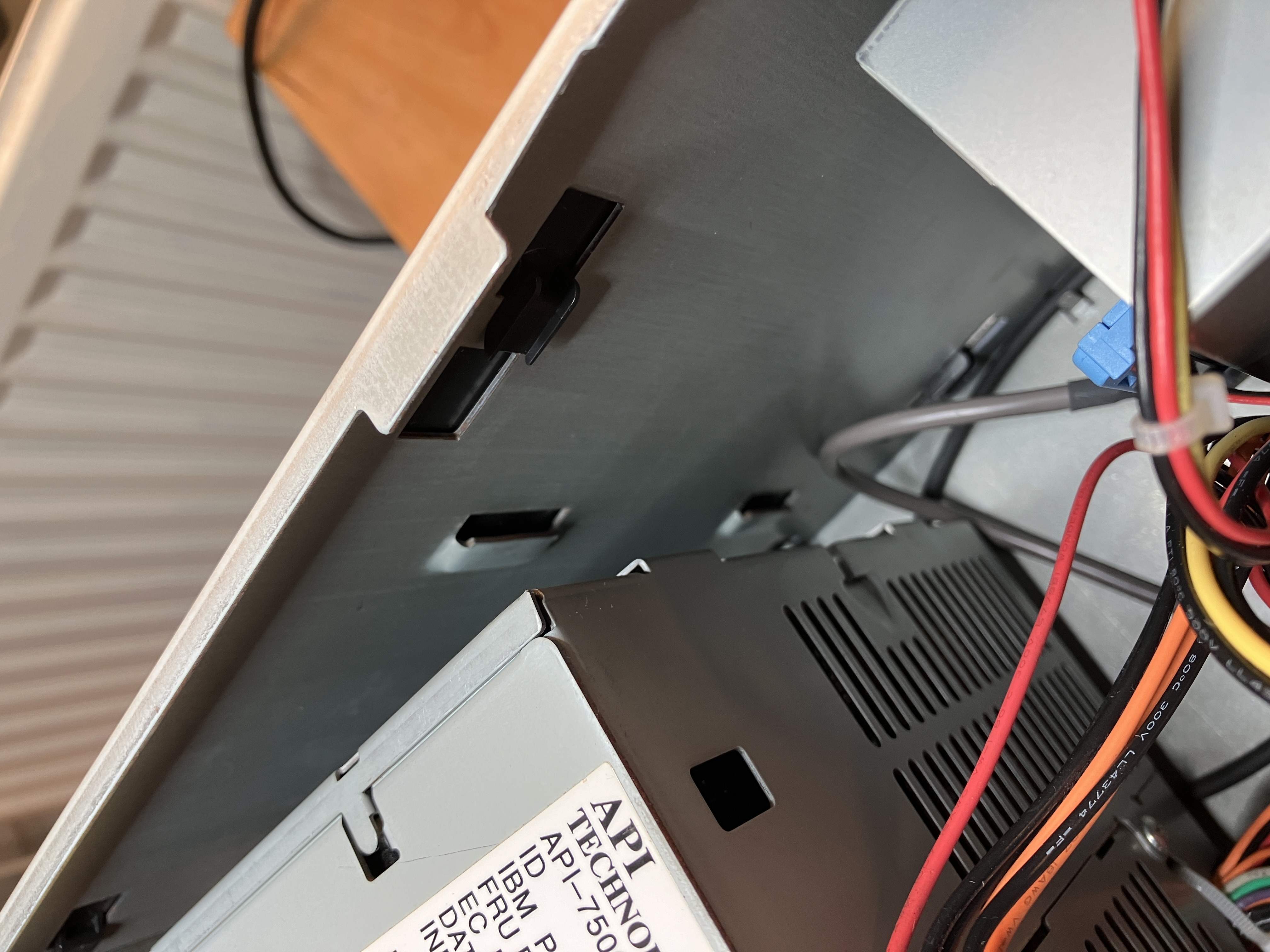 Nach dem Ausbau des oberen Käfigs (siehe Folgebild 1) kann man sehr gut die DatenKabel im inneren entfernen. IBM war hier immer vorbildlich und hat die Systeme