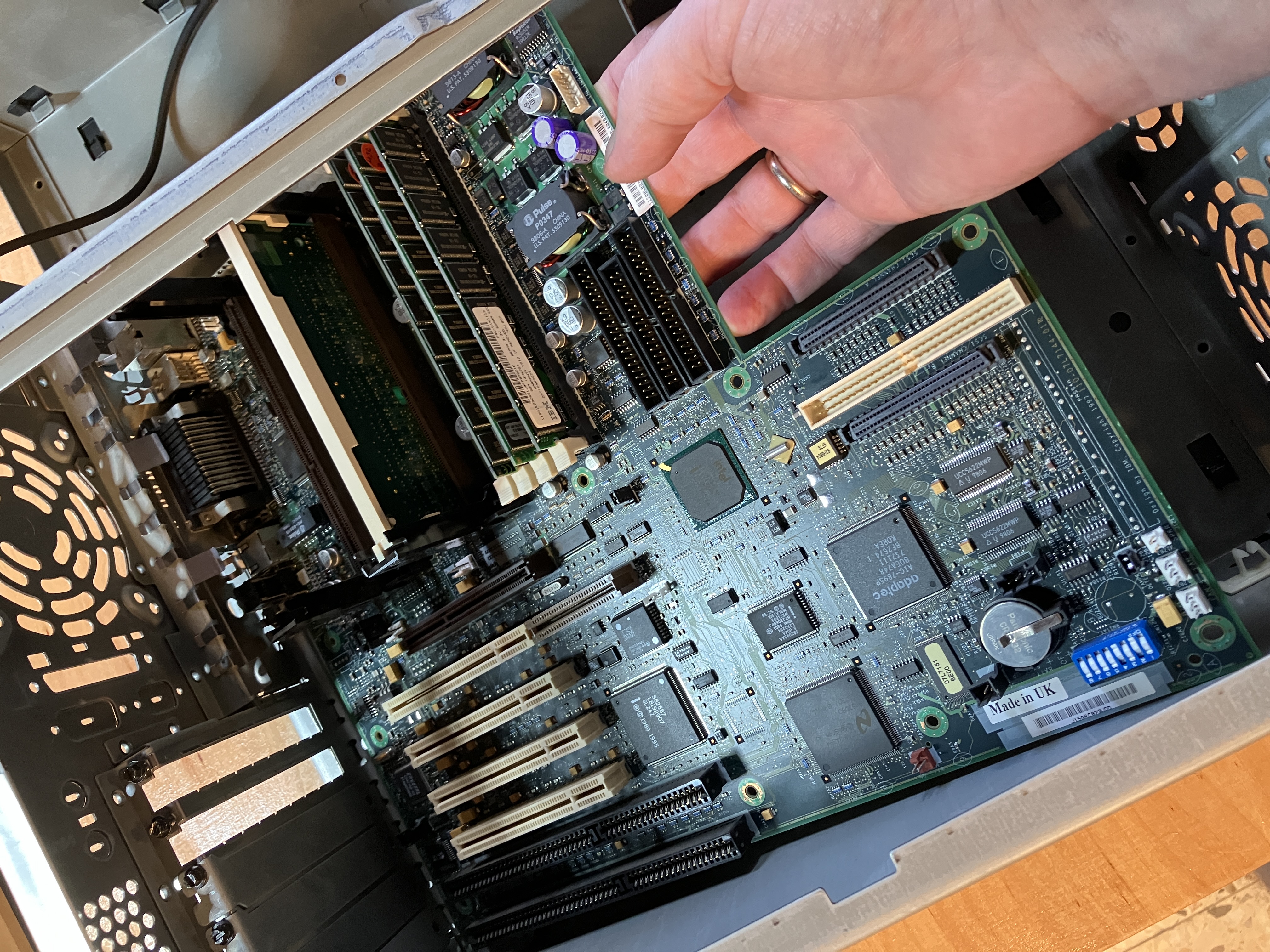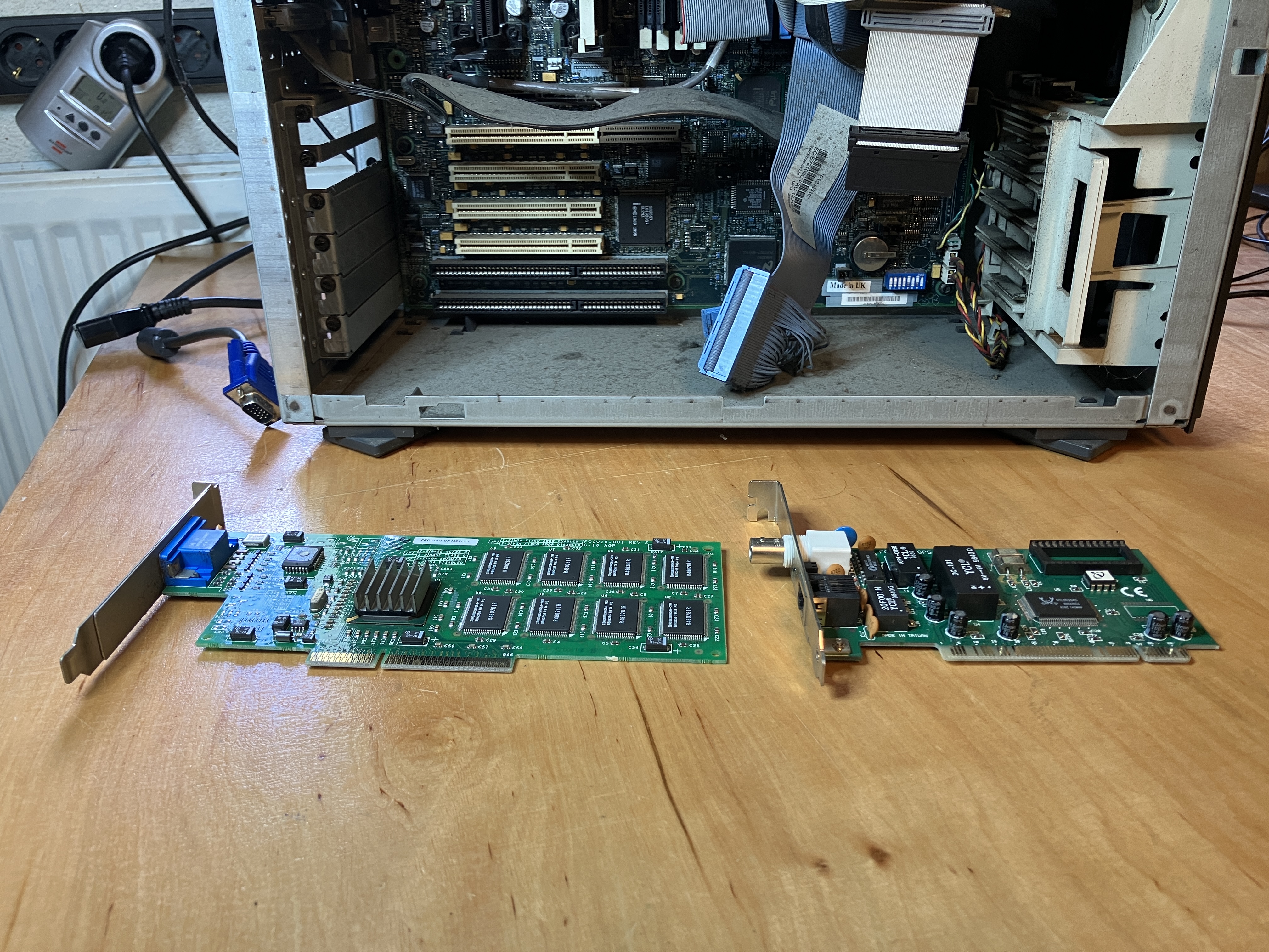 In dem Rechner sind zwei Erweiterungskarten verbaut. Eine Grafikkarte (Permedia 3D) und eine Netzwerkkarte. Die wurde wohl für den BNC Anschluss benötigt, denn diese