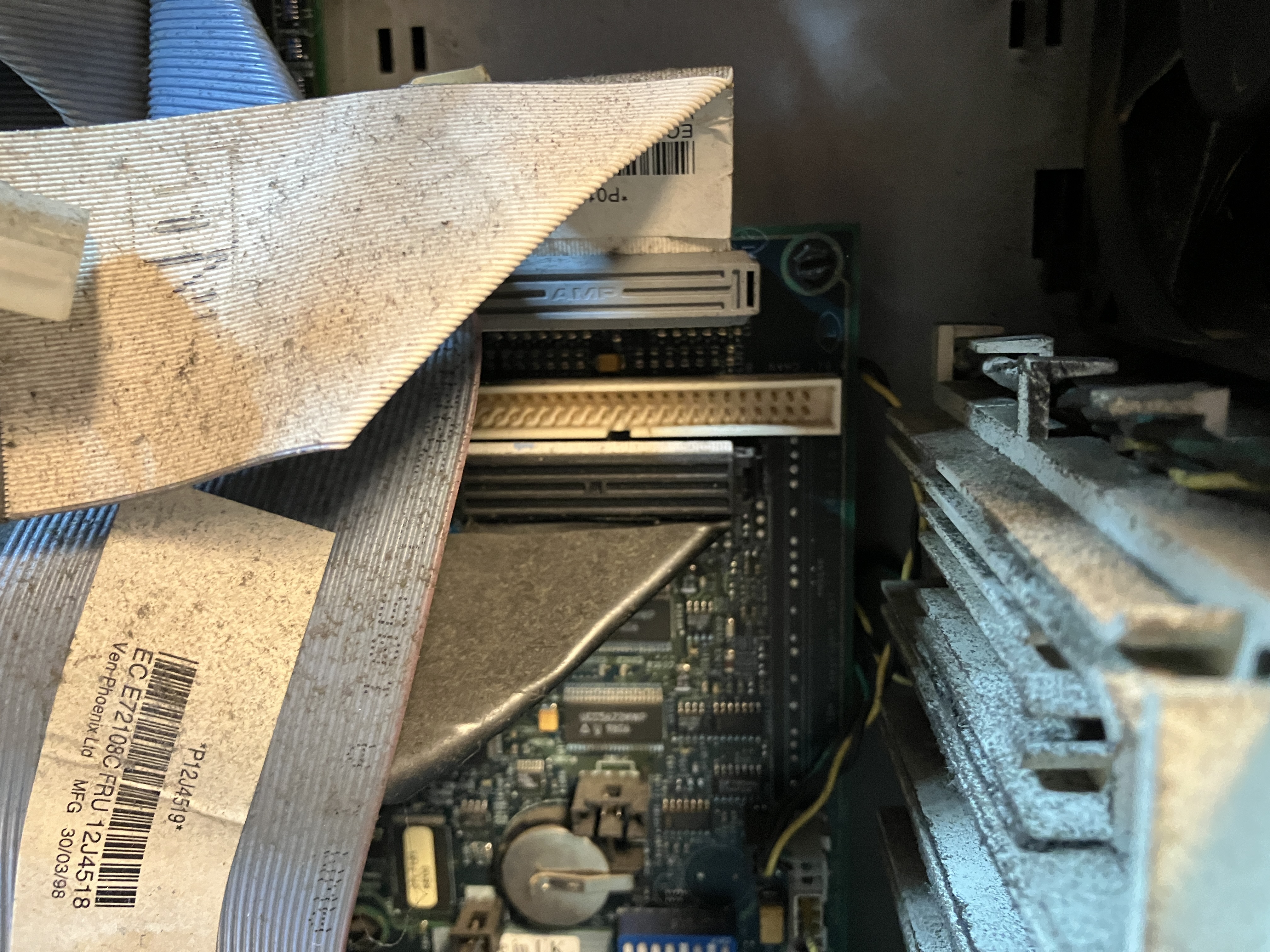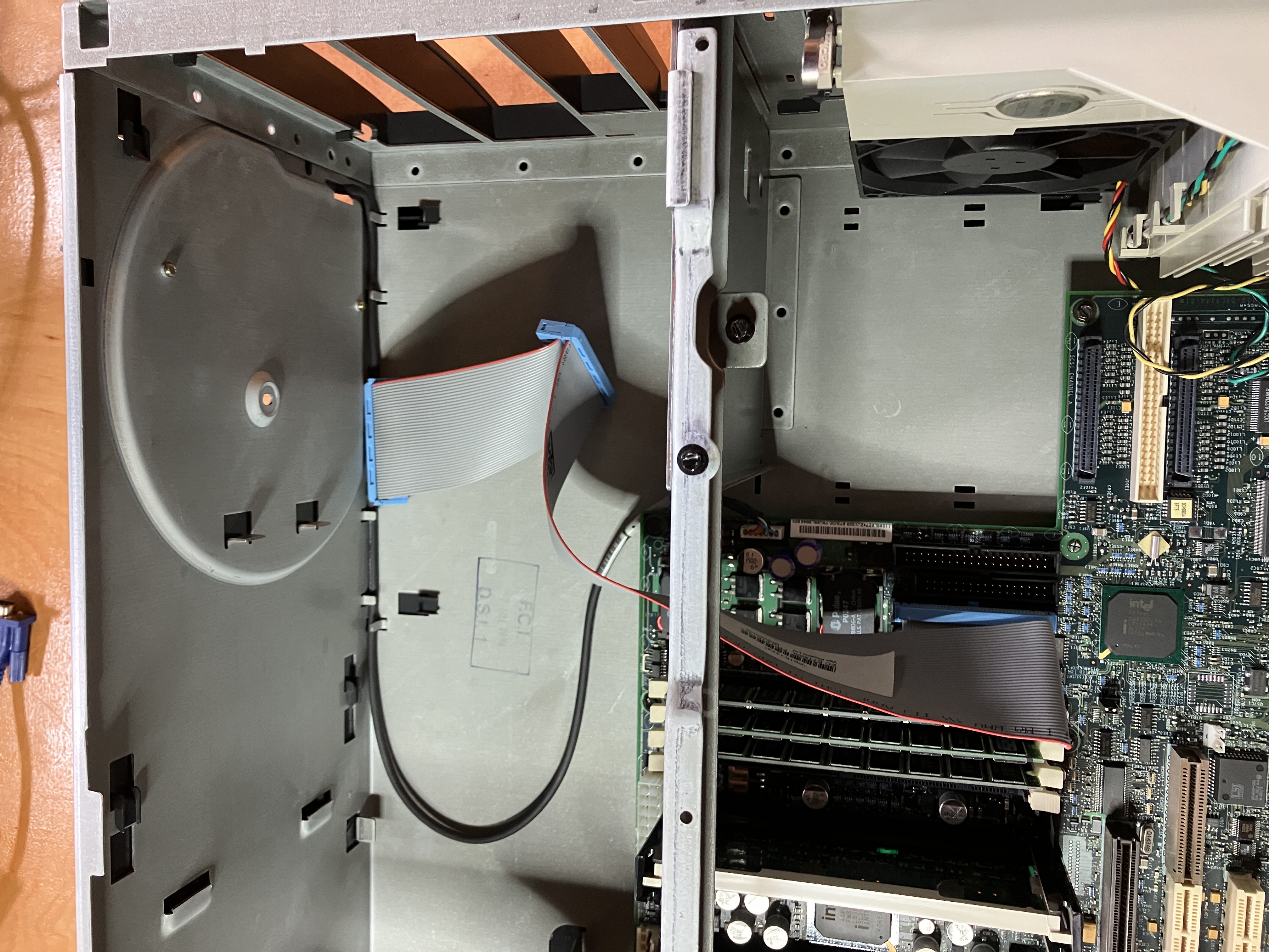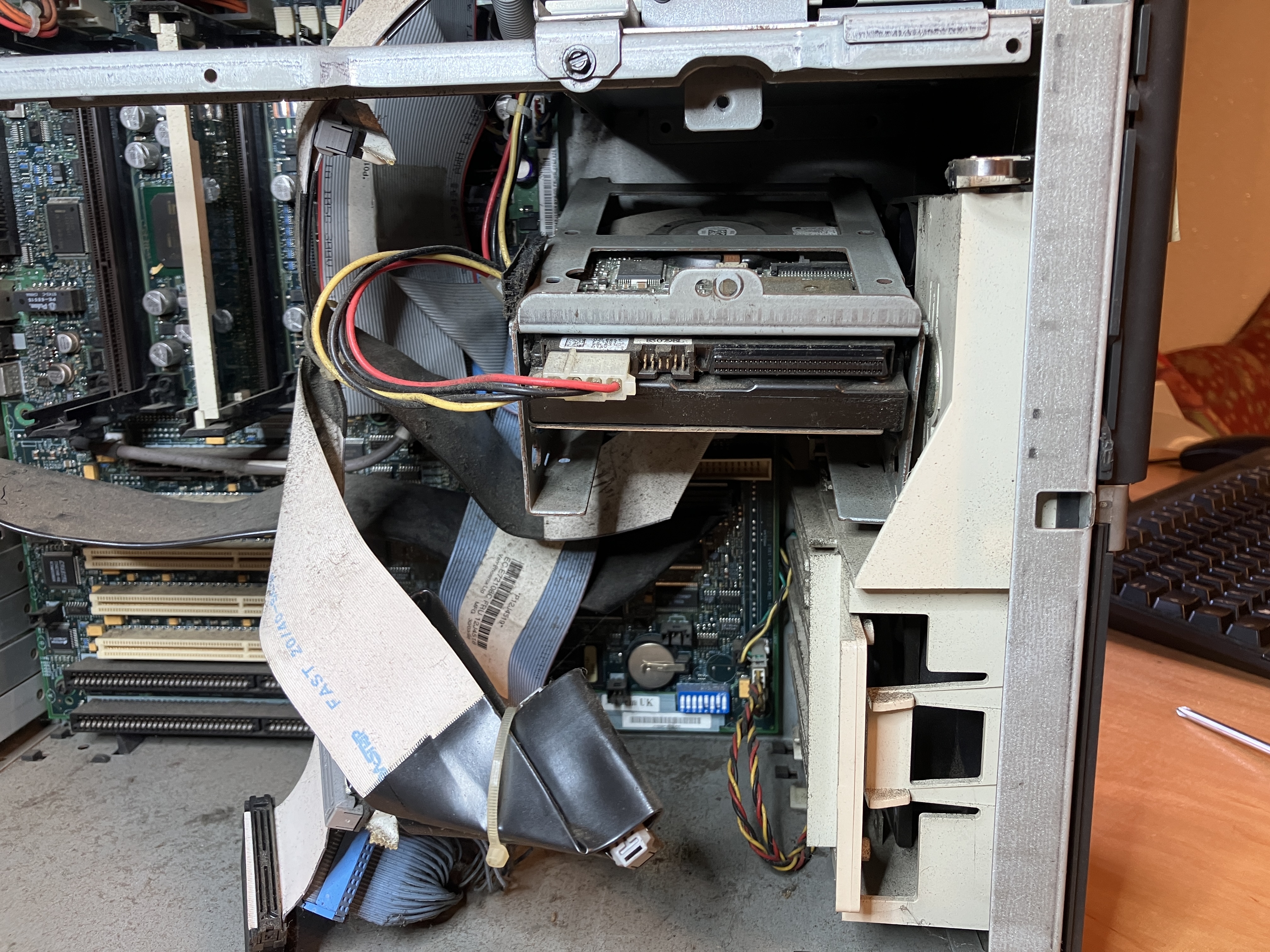 entsprich auch den Folgebildern 1-5. IDE 2 Kabel (für das CD Laufwerk), Floppy Kabel, IDE 1 für zwei (nicht vorhandenen IDE Festplatten), SCSI aussen (da das Kabel