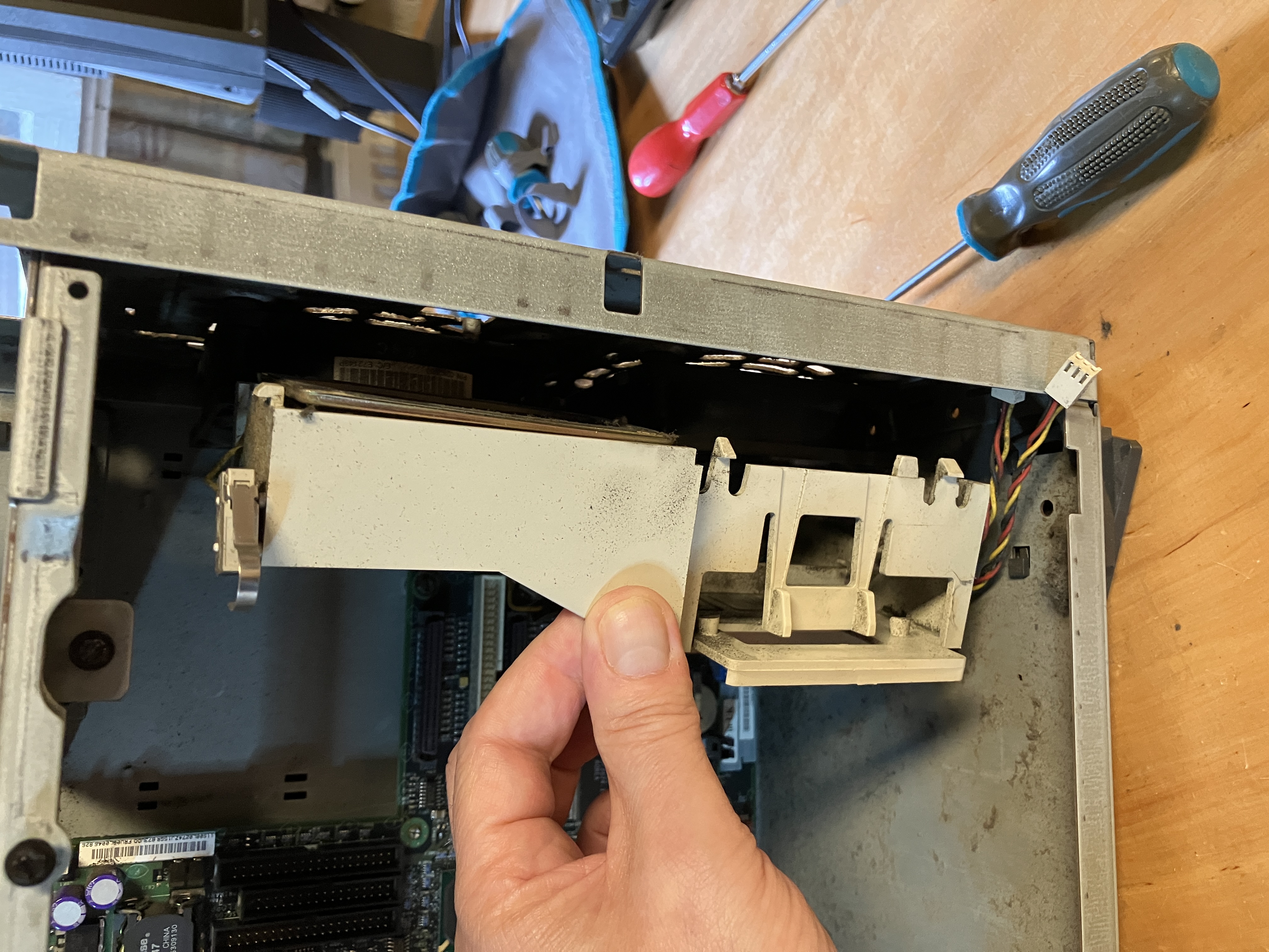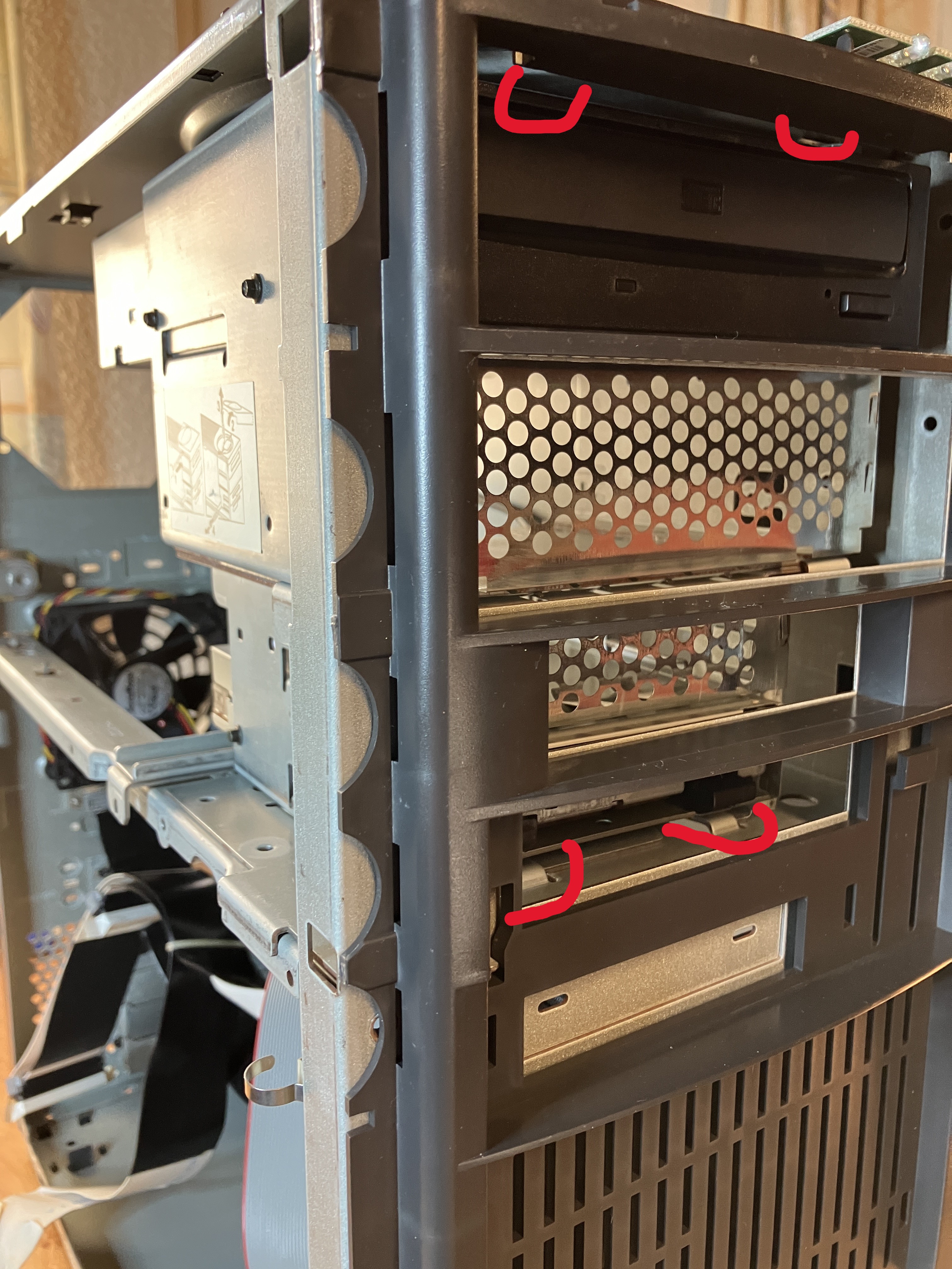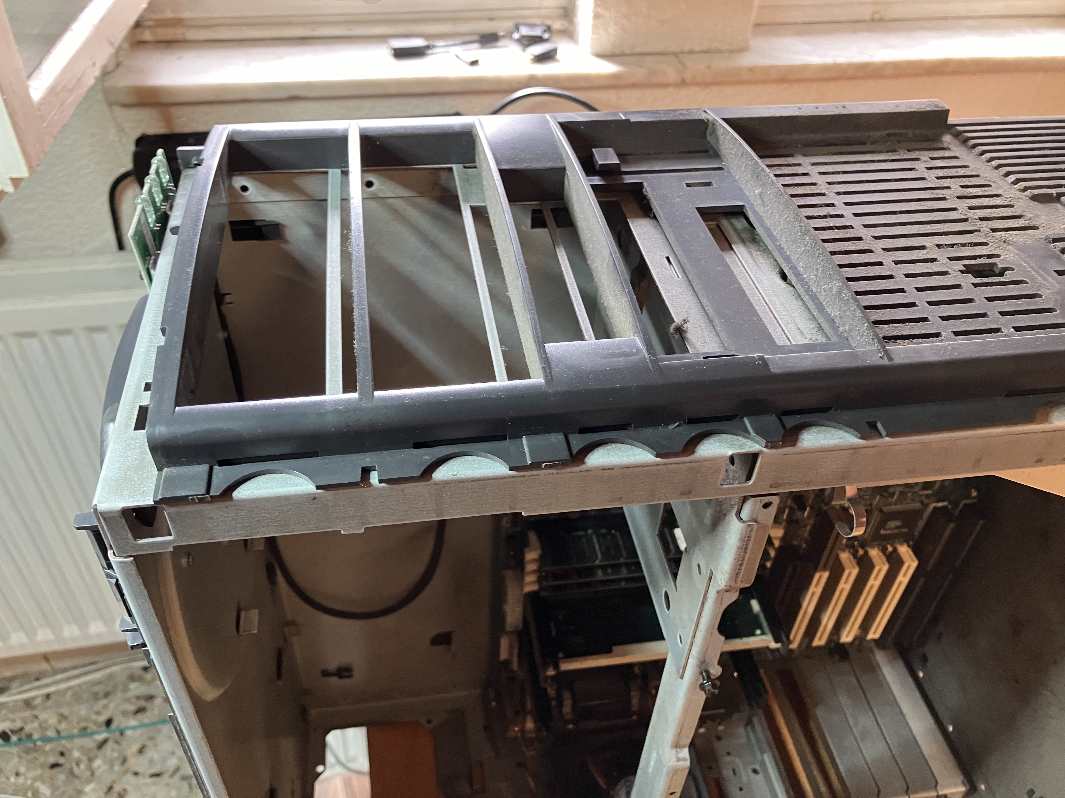 Der obere Käfig für optisches und Disketten Laufwerk