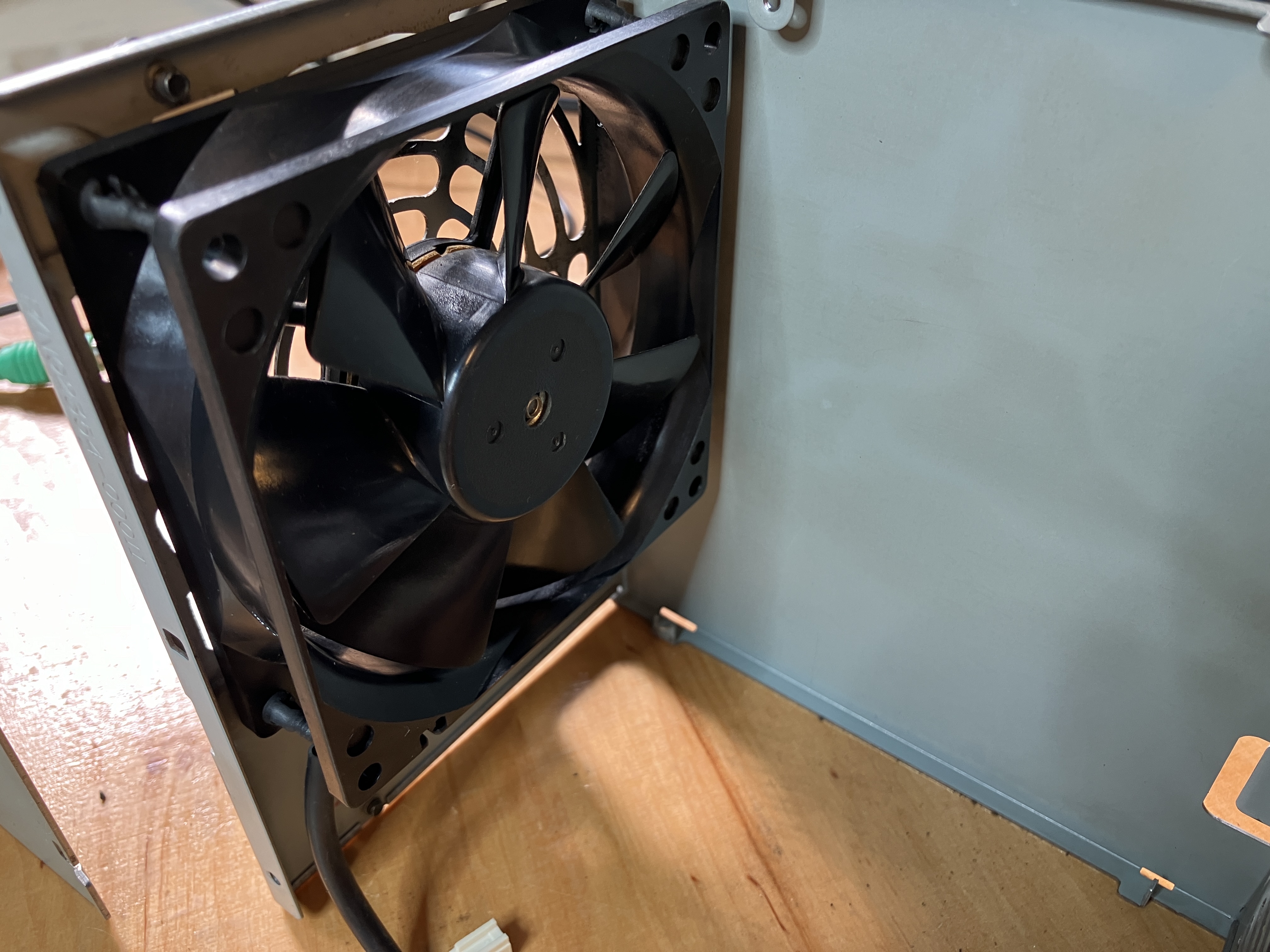 war. Wichtig beim Auspusten der Lüfter ist, den Lüfter selbst zu arretieren. Er soll nicht durch den Luftstrom überdrehen. Insbesondere bei diesen hat