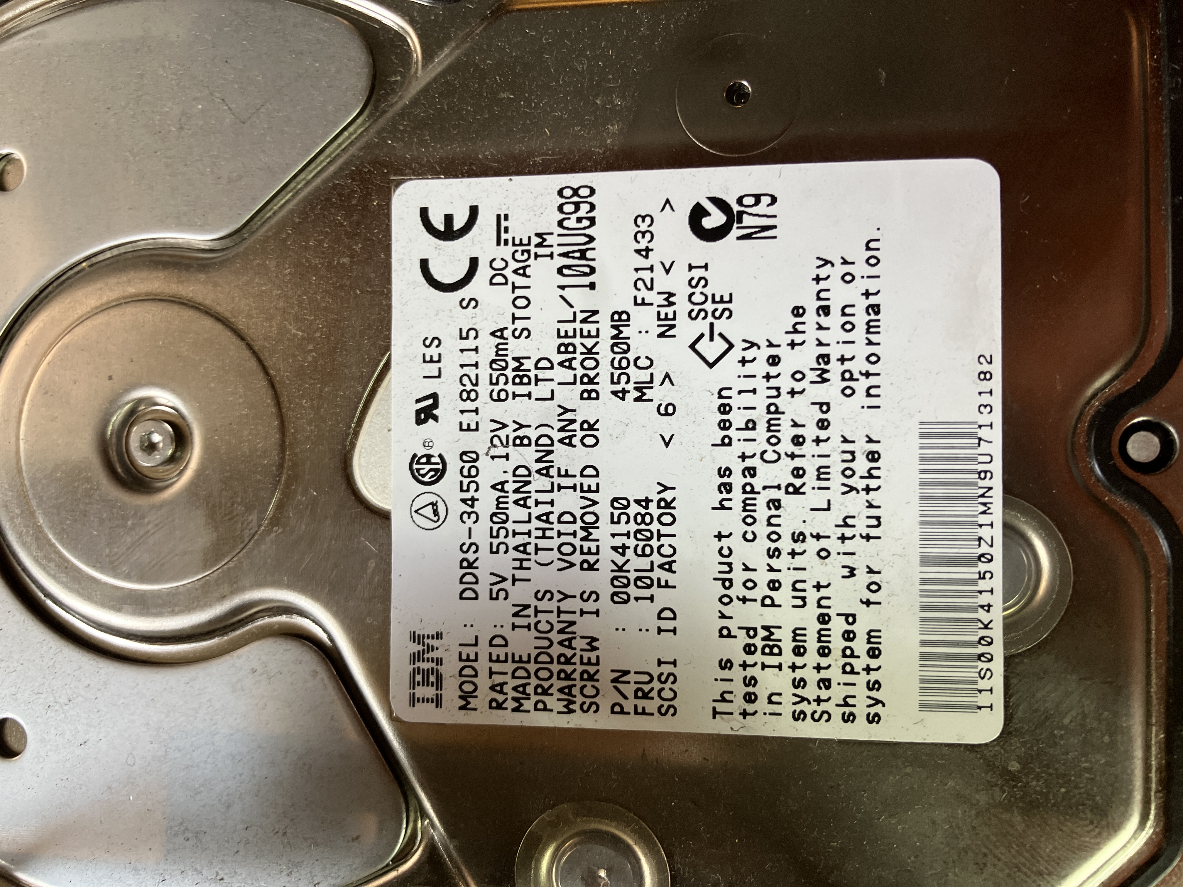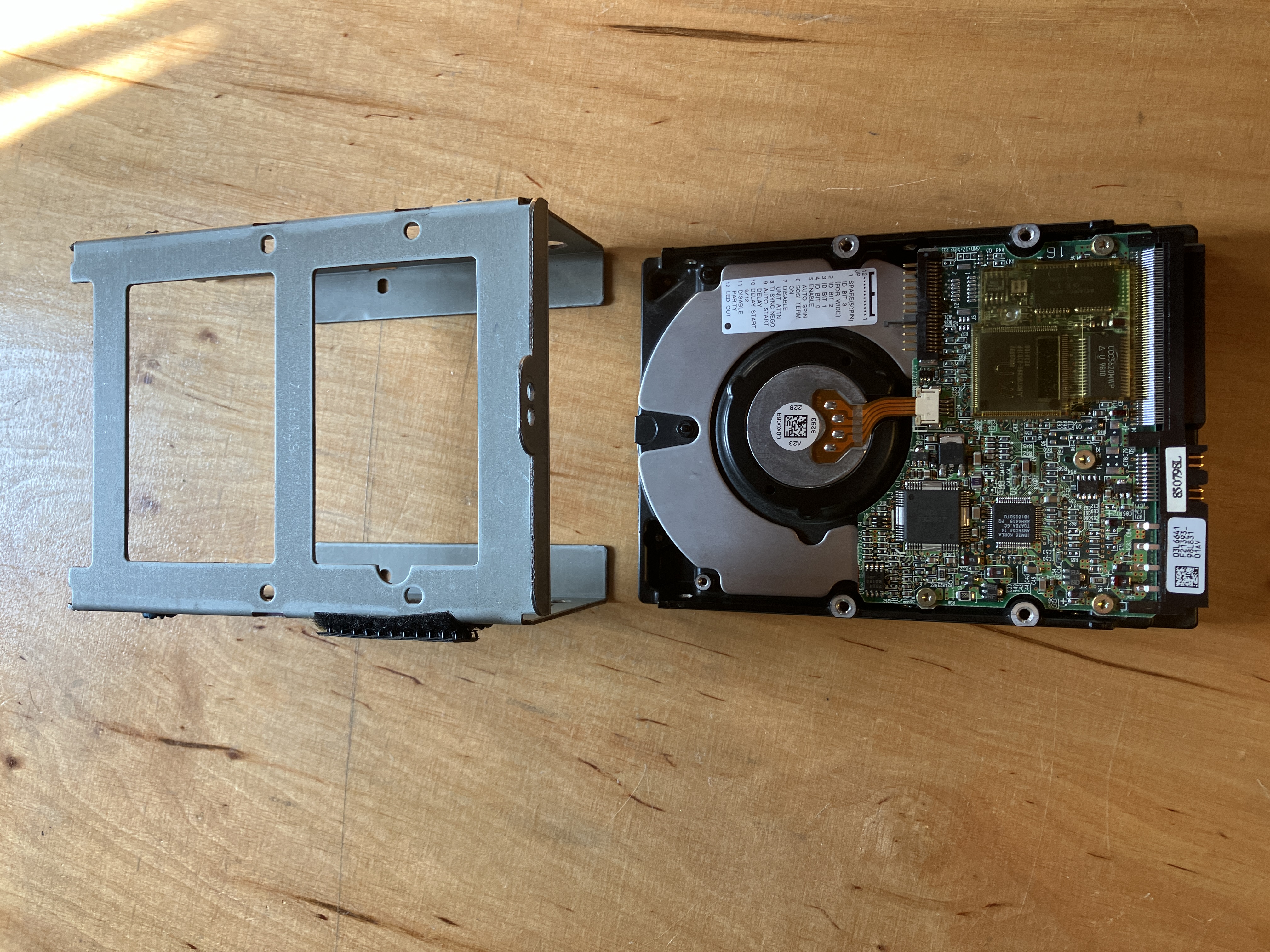 sich um eine DDRS-34560 SCSI Festplatte mit 68 poligem Anschluß. Diese waren recht performant und brachten eine Kapazität von 4,5 GB Mit sich. Schön zu sehen auch die