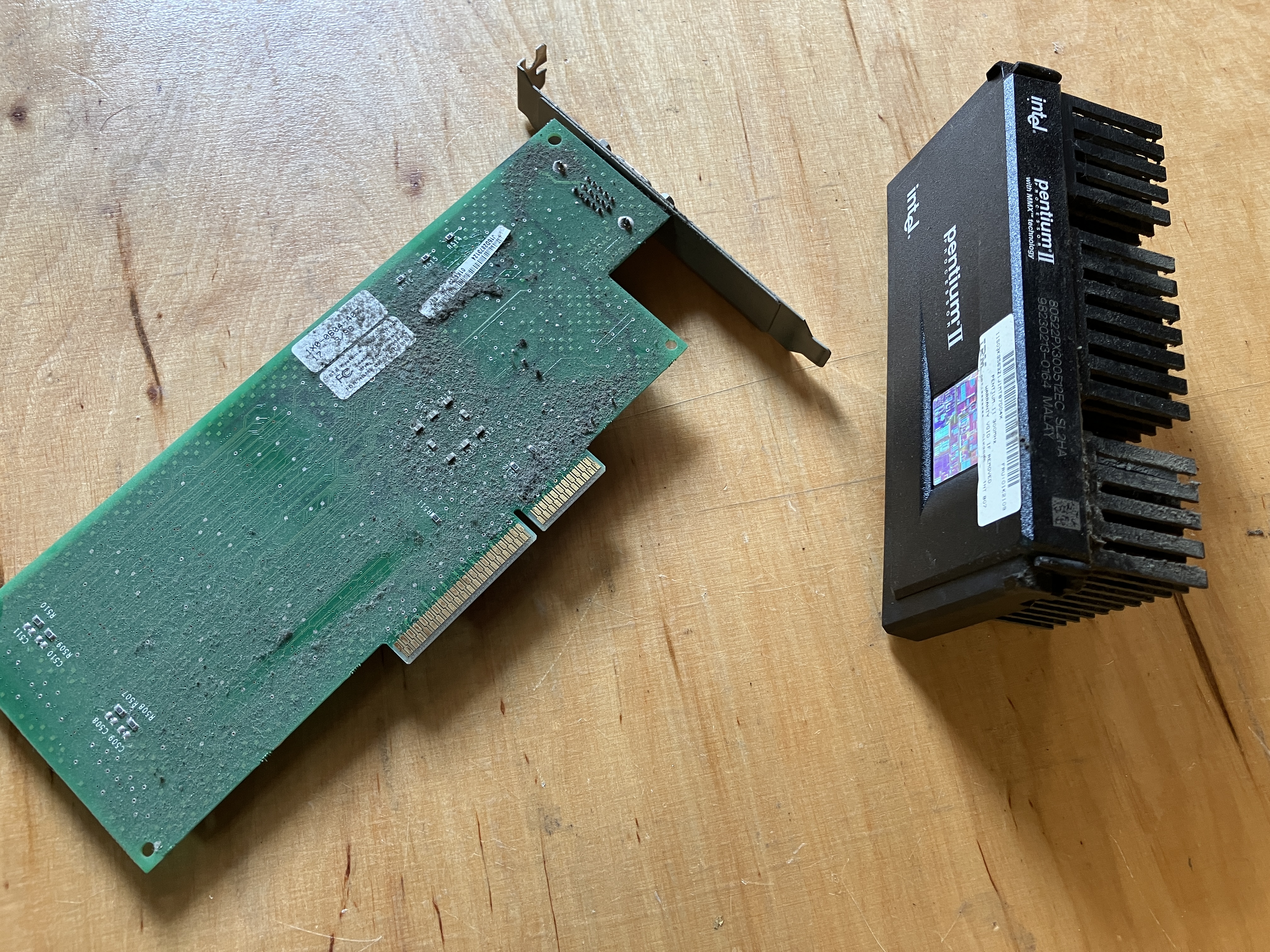 - CPU Pentium II 300 MHz mit 66 MHz FSB (Front Side Bus), Slot 1 CPU im SECC 3.0 Package, 512 KB L2 Cache(