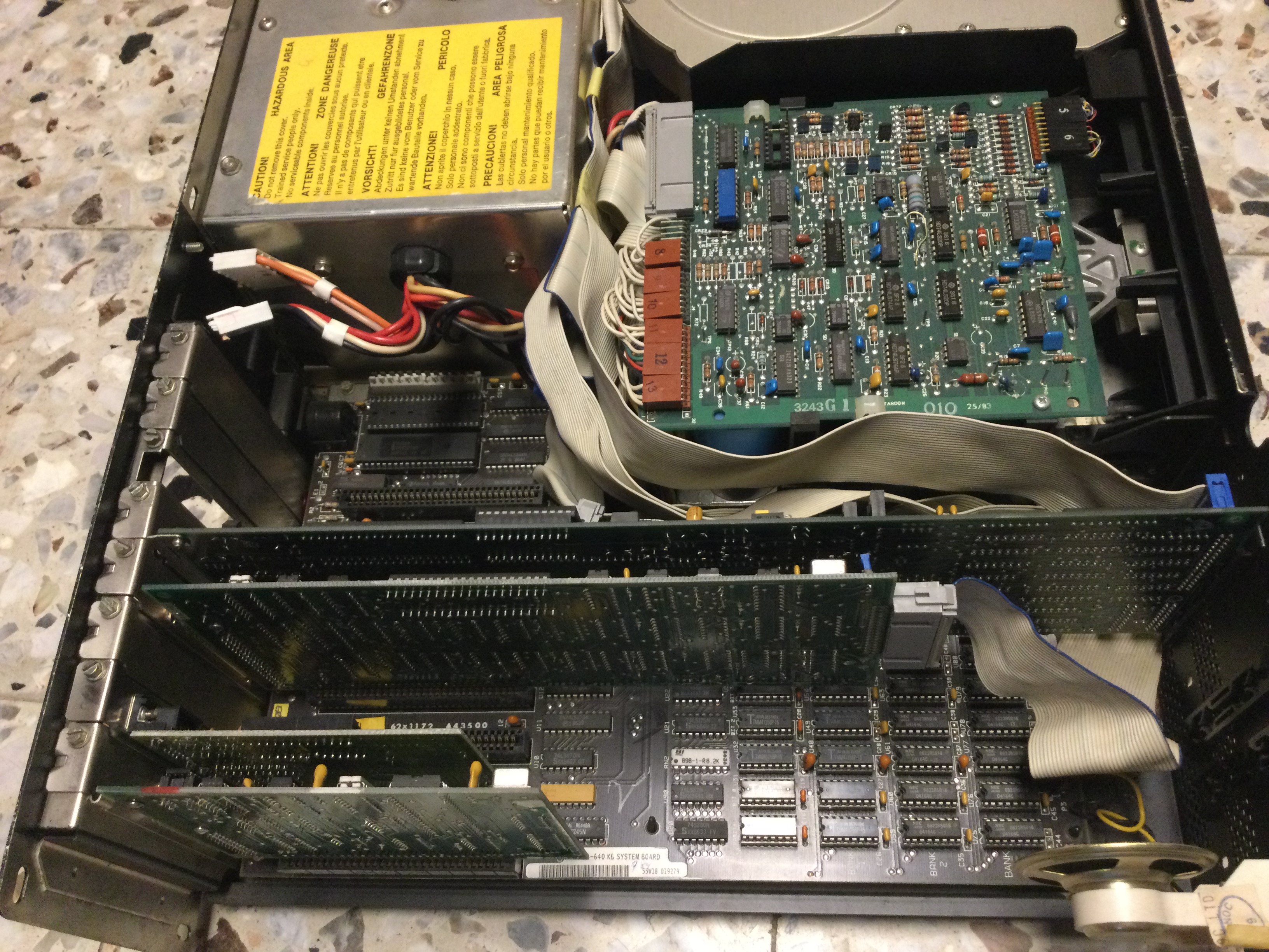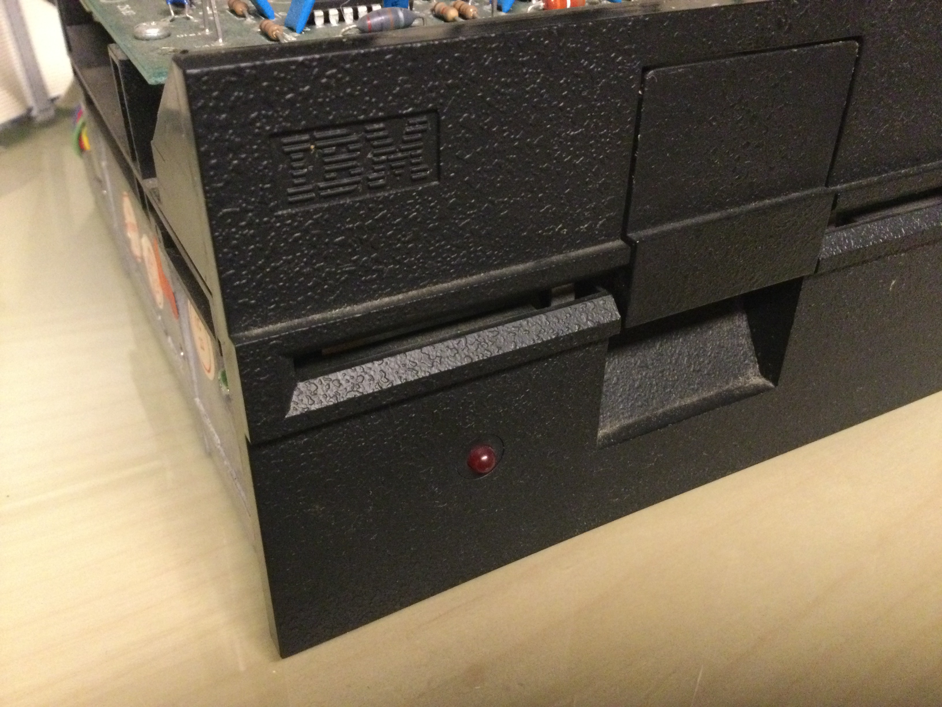 Ein wahres Prachtexemplar der frühen Computergeschichte ist dieses doppelt hohe 5,25 Zoll Floppy Laufwerk im IBM XT. Hergestellt von Tandon für