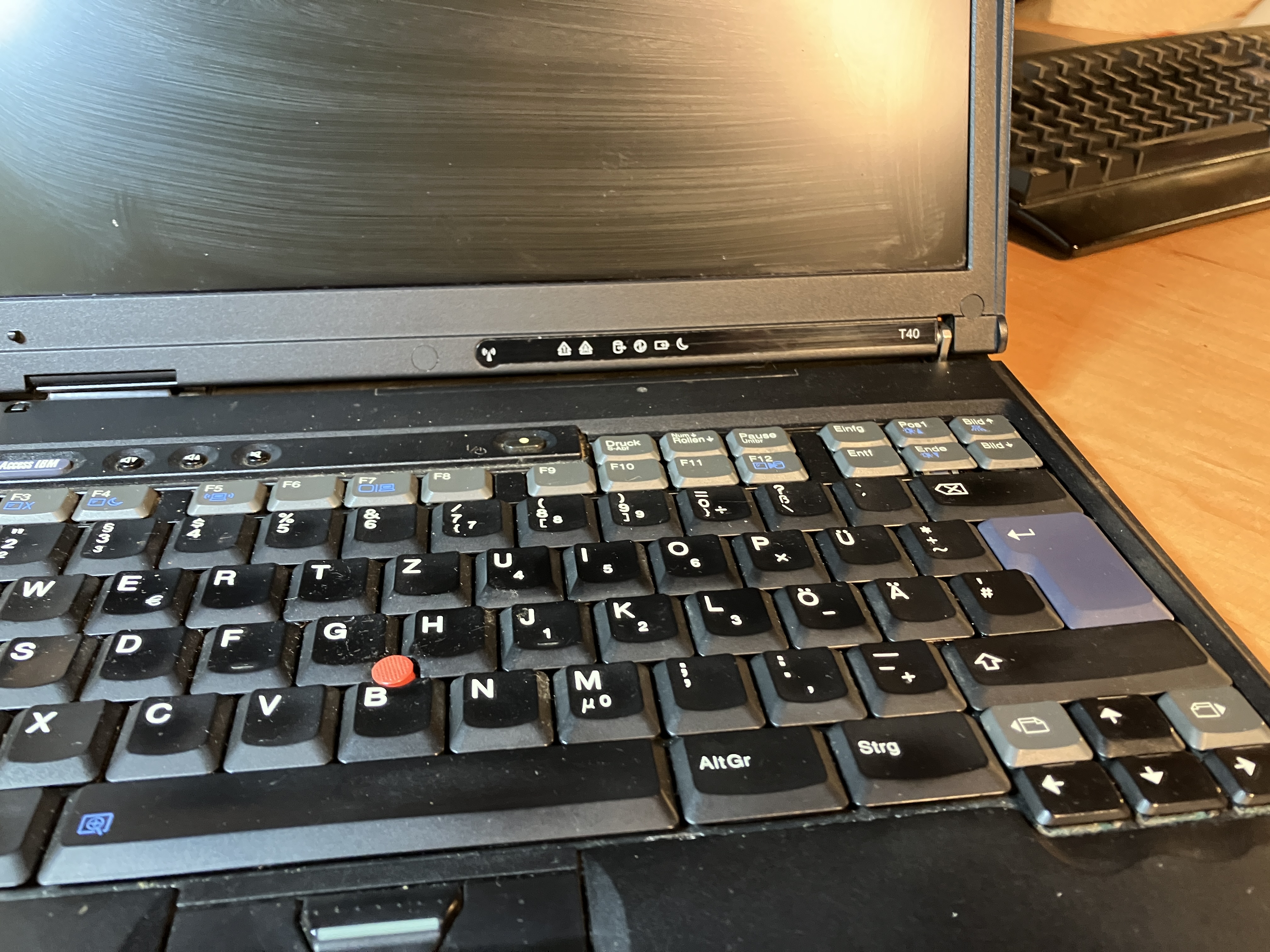 also seinen Dienst bei der IBM geleistet. Der Zusatand ist im Bereich 3-4. Das Notebook hat deutliche Gebrauchsspuren auf dem