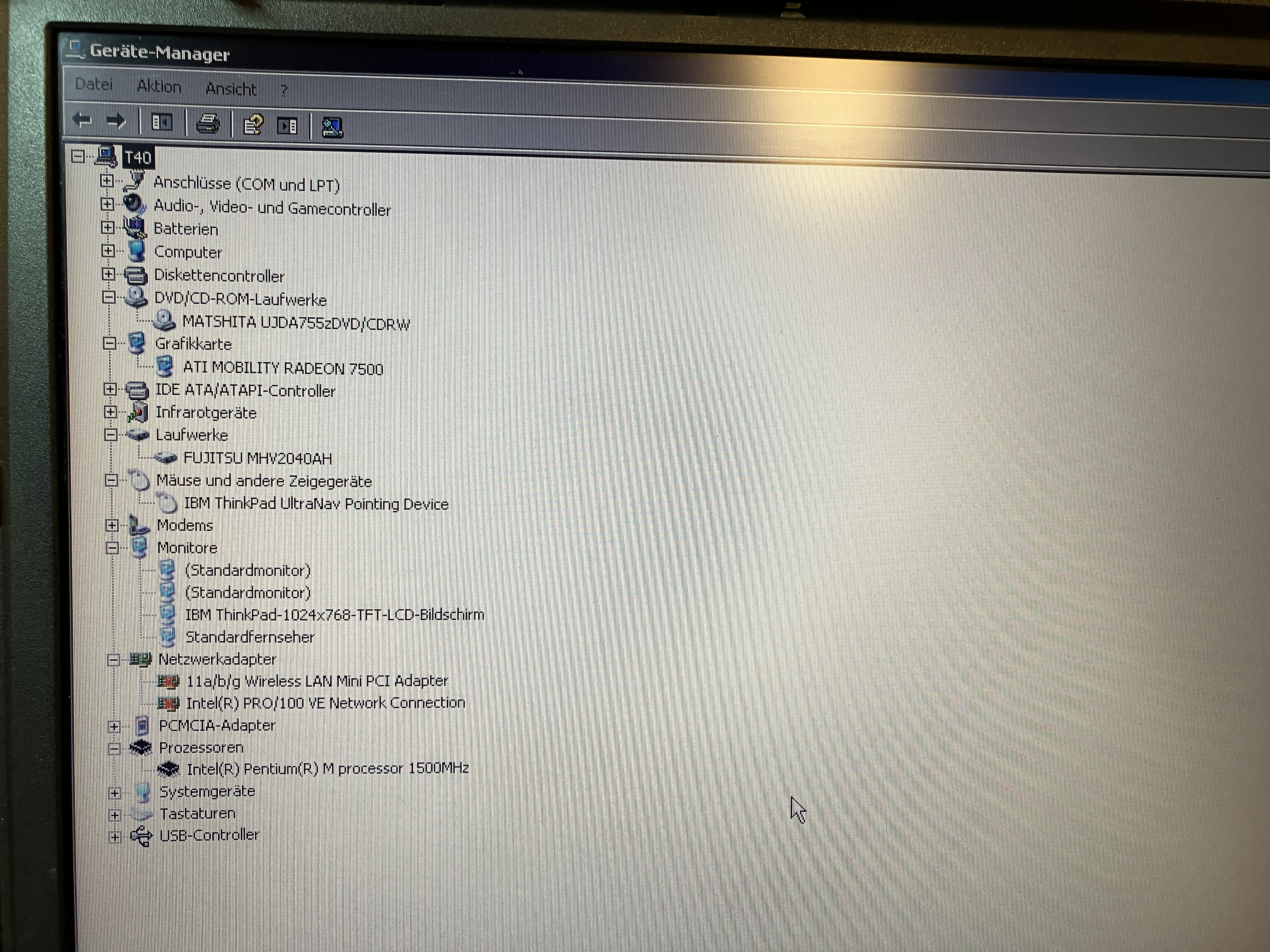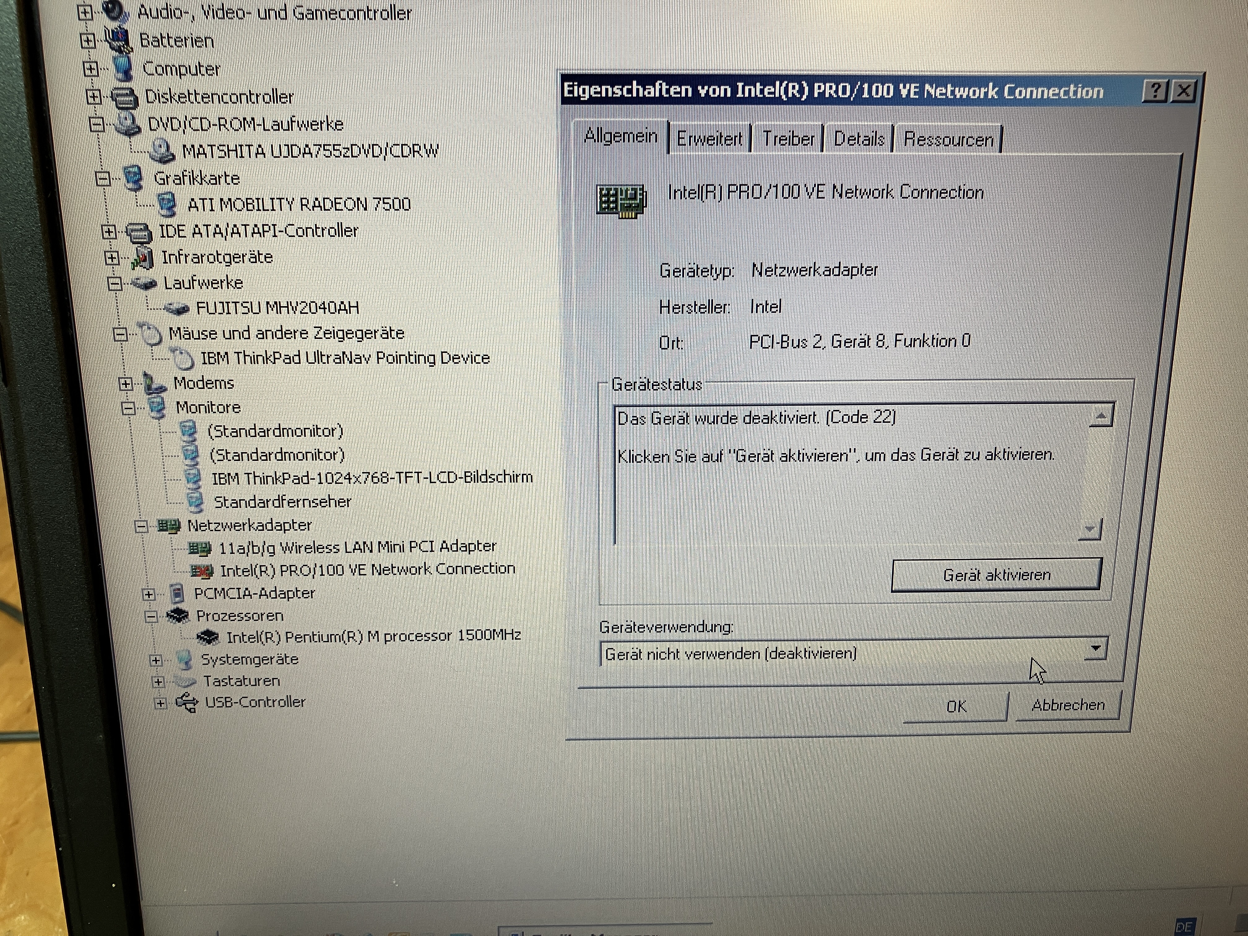 noch das Fragezeichen aus dem Geräte Manager verbannen, welches den Modem Treiber benötigt. Die Notebooks von IBM hatten fast immer einen LAN und einen Modem Anschluß
