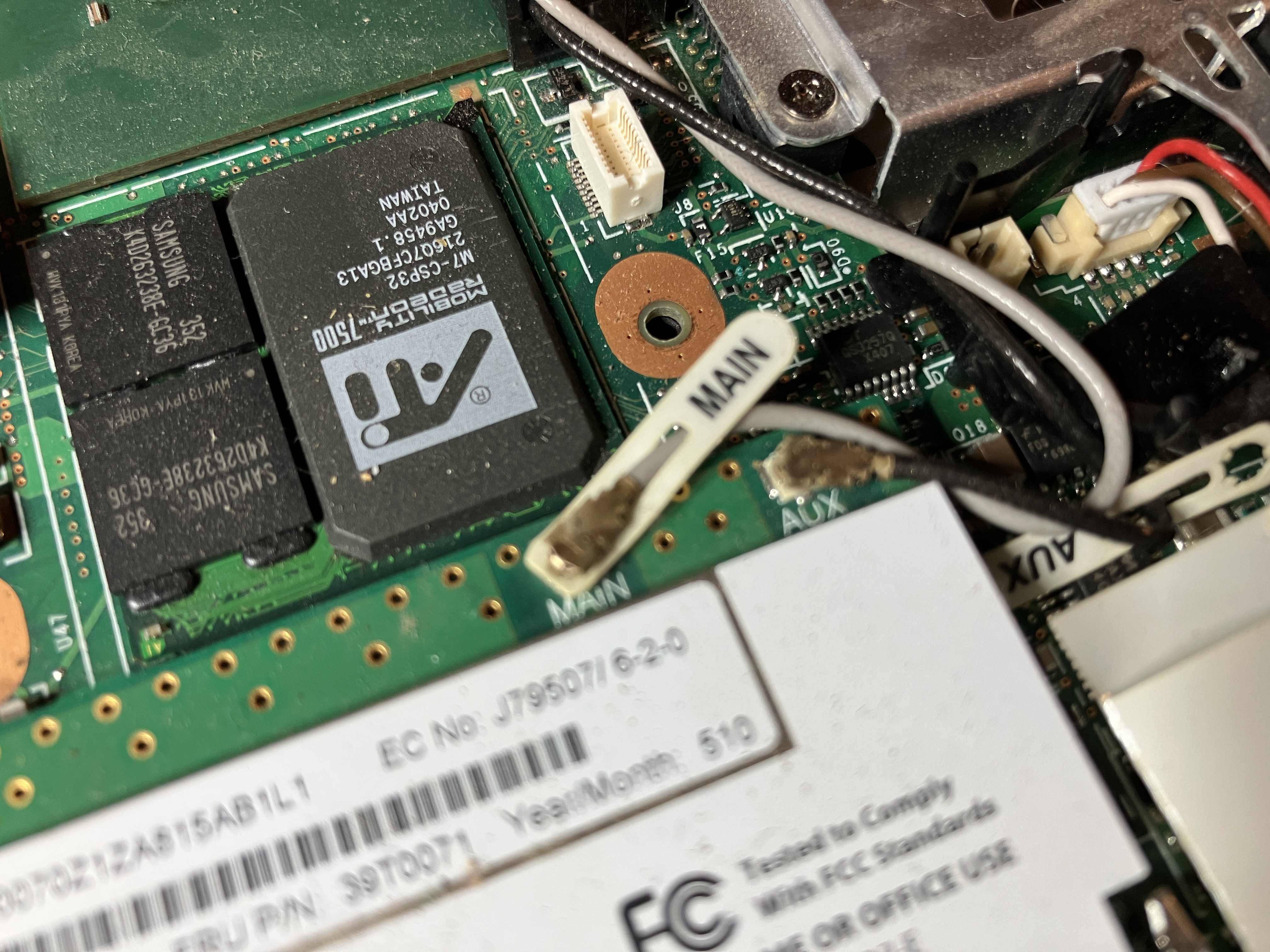 Beschriftung (Main und Aux) wird die Sache noch deutlicher (ist nicht bei jedem Thinkpad der Fall). Auf Folgebild 2 ist die ausgebaute WLAN Karte sichtbar.