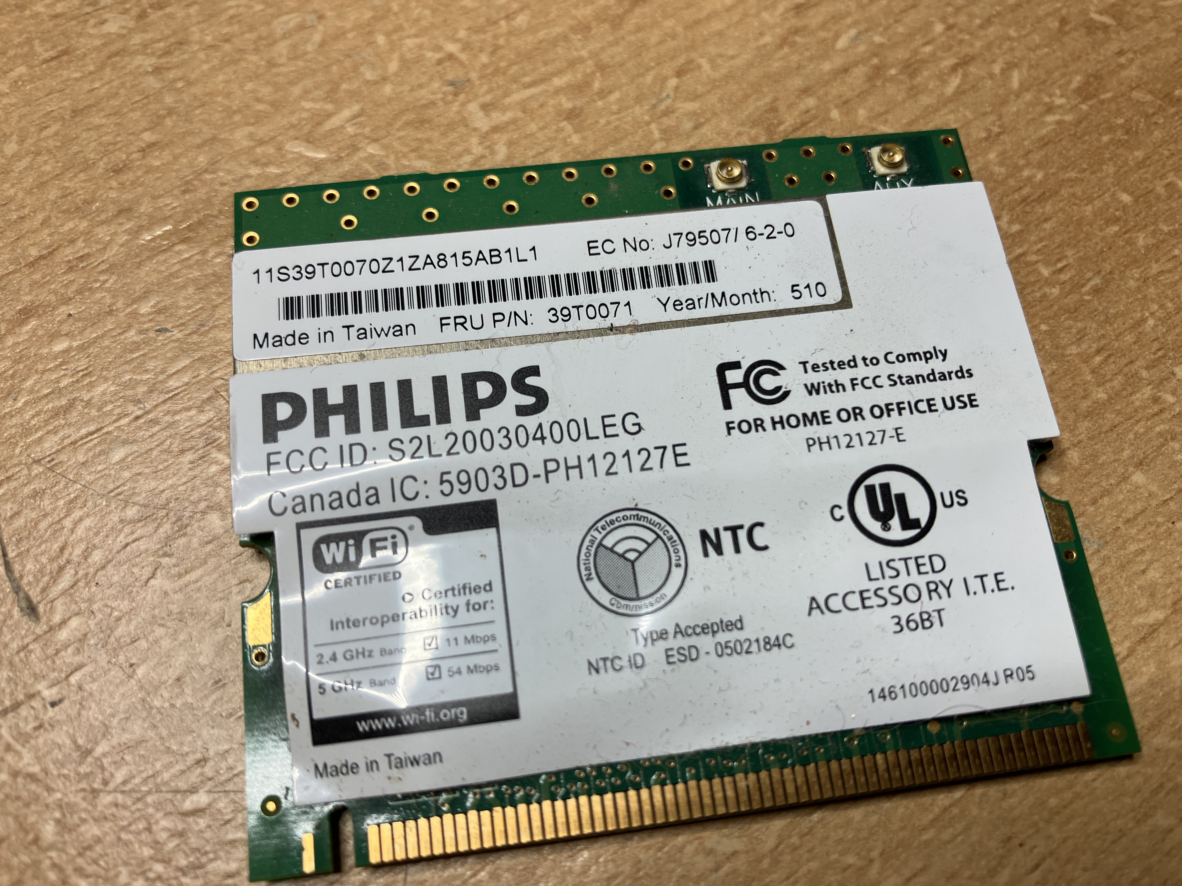 Anhand der FRU 39T0071 kann man gut identifizieren (via Internet Suche), dass es sich um dem "IBM 11a/b/g Wireless LAN Mini PCI Adapter" handelt und den entsprechenden