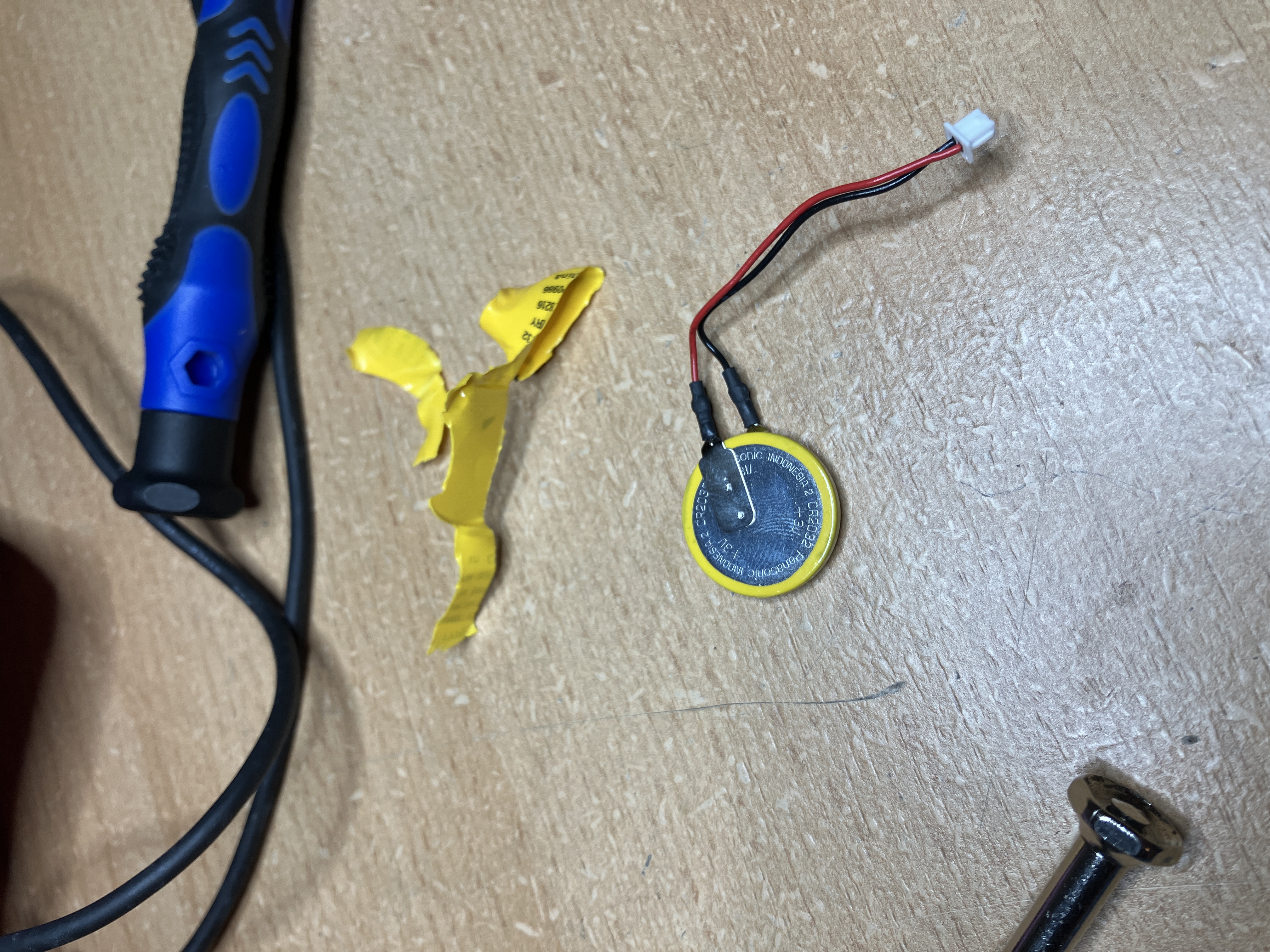 Um die Kosten für die (relative teure) BIOS Batterie mit Kabeln zu sparen nutze ich einfach Textiltape und verklebe die beiden Pole mit diesem auf der neuen