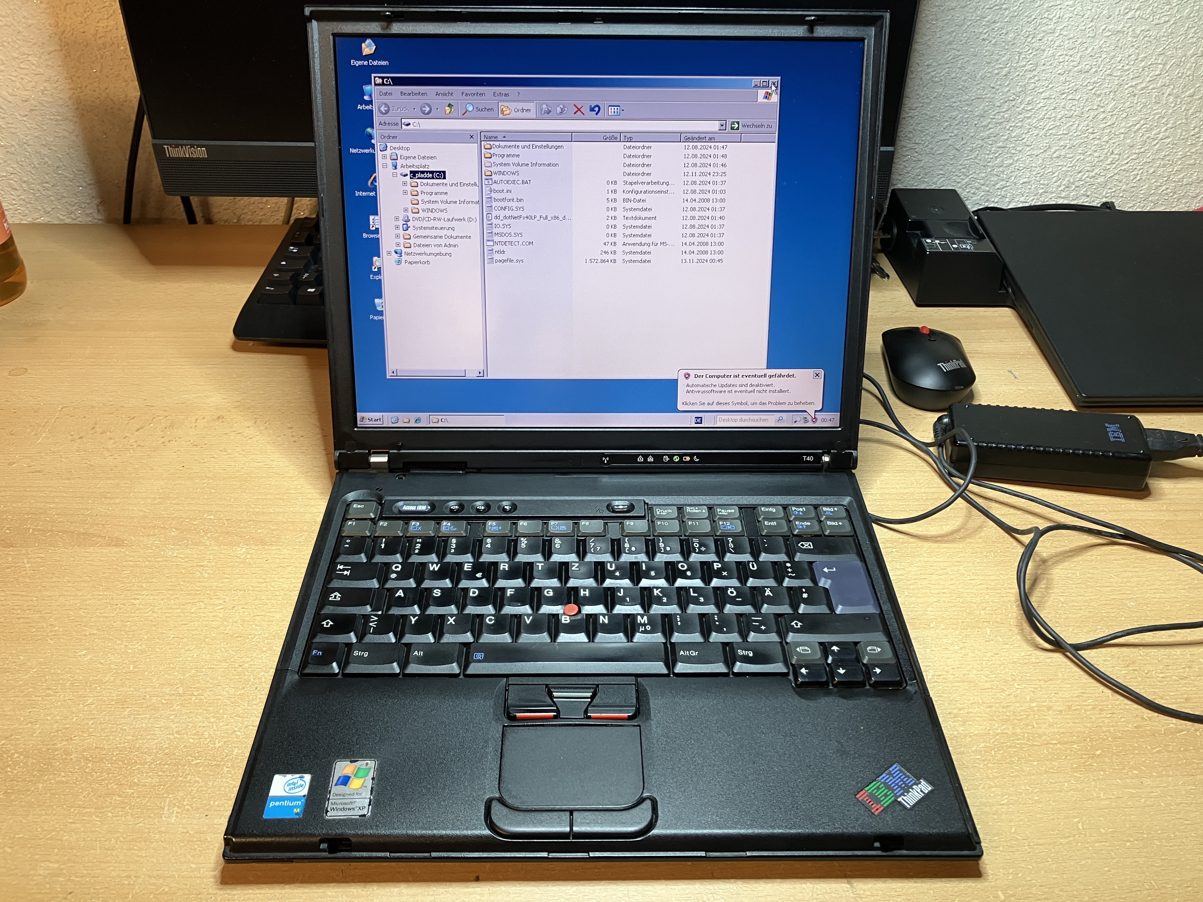 Für dieses Notebook ist Windows XP vorgesehen. Das funktioniert für dieses Notebook hervorragend, da viele Treiber von IBM heute noch online sind. Auch haben