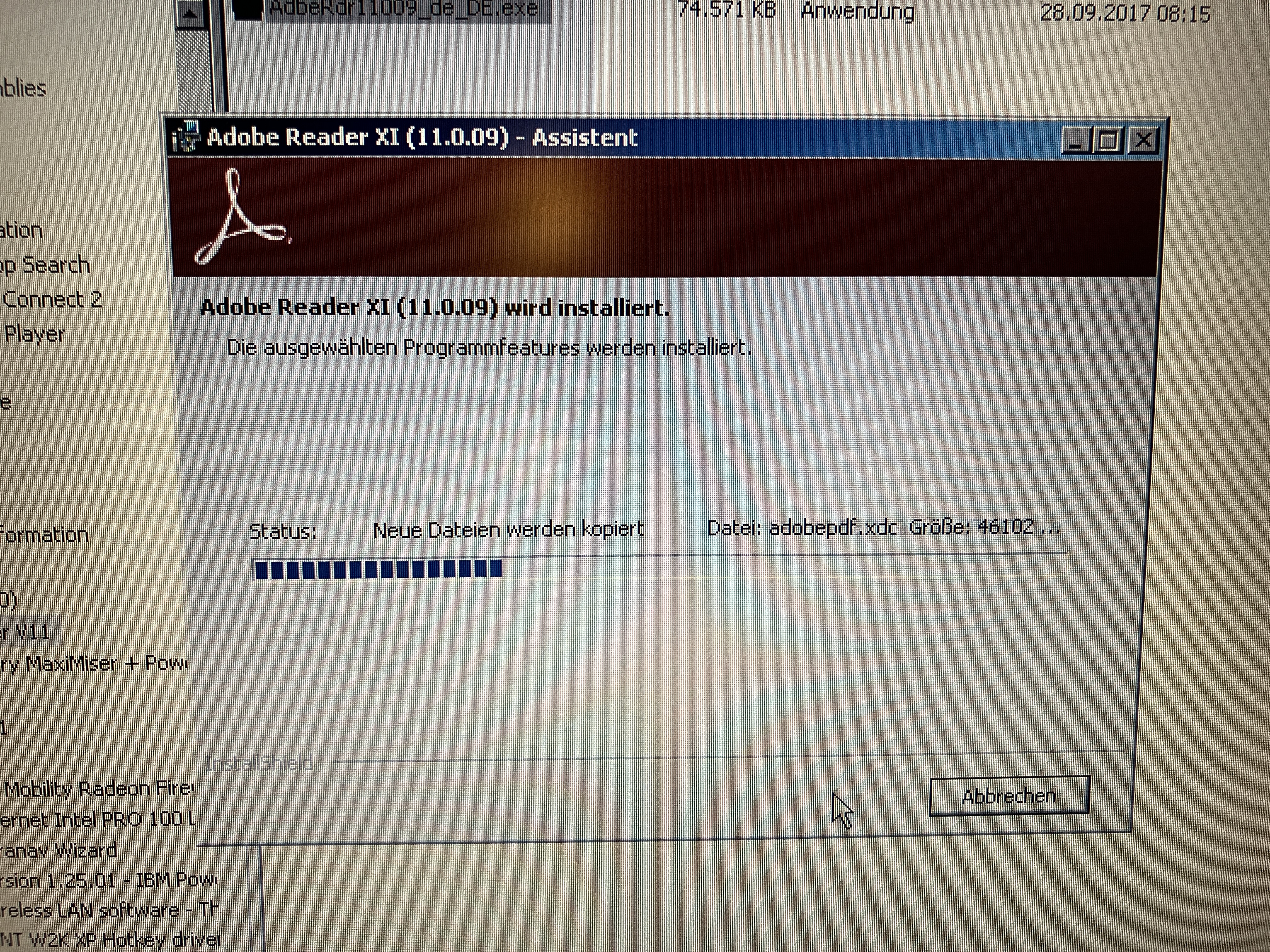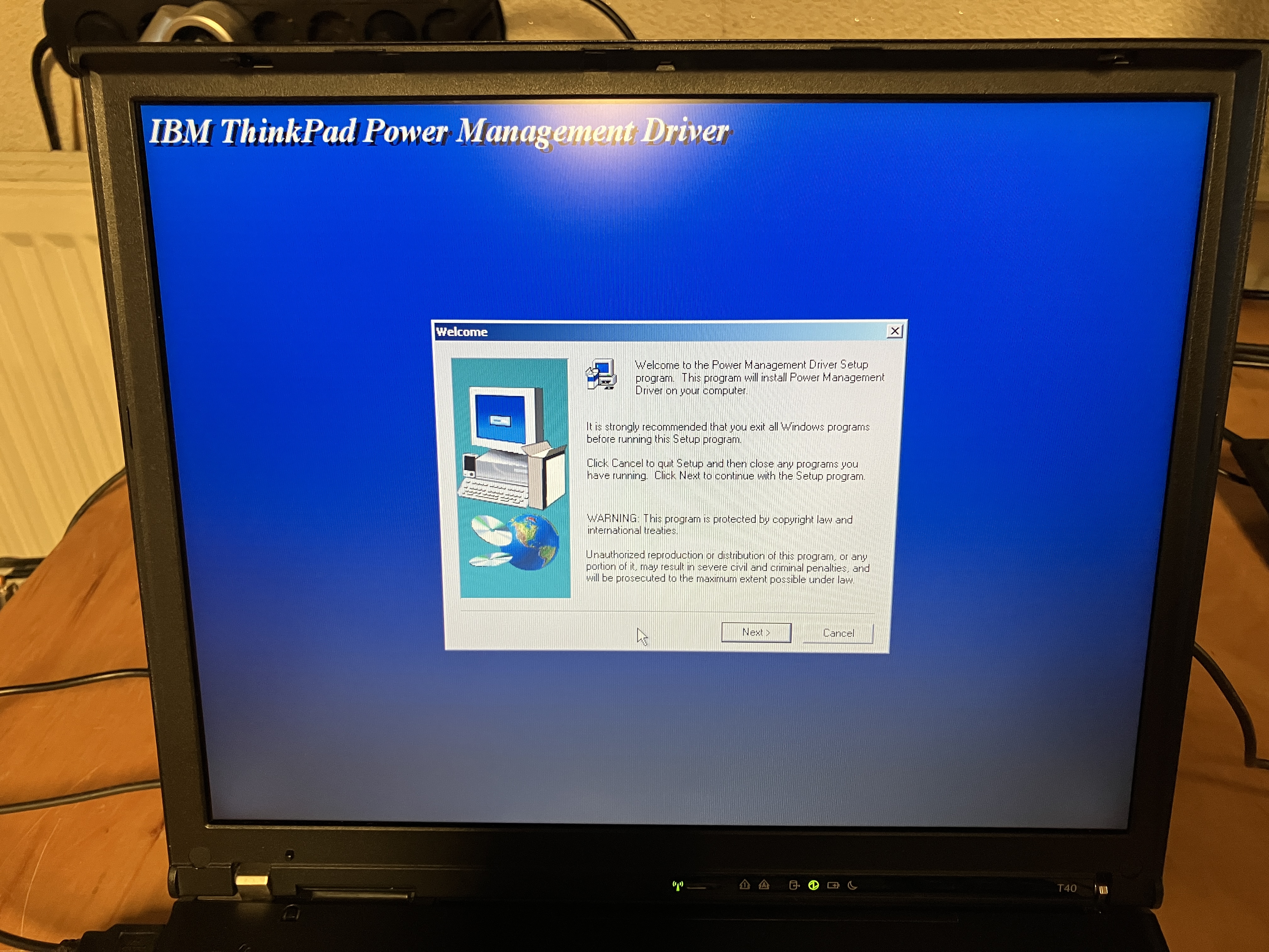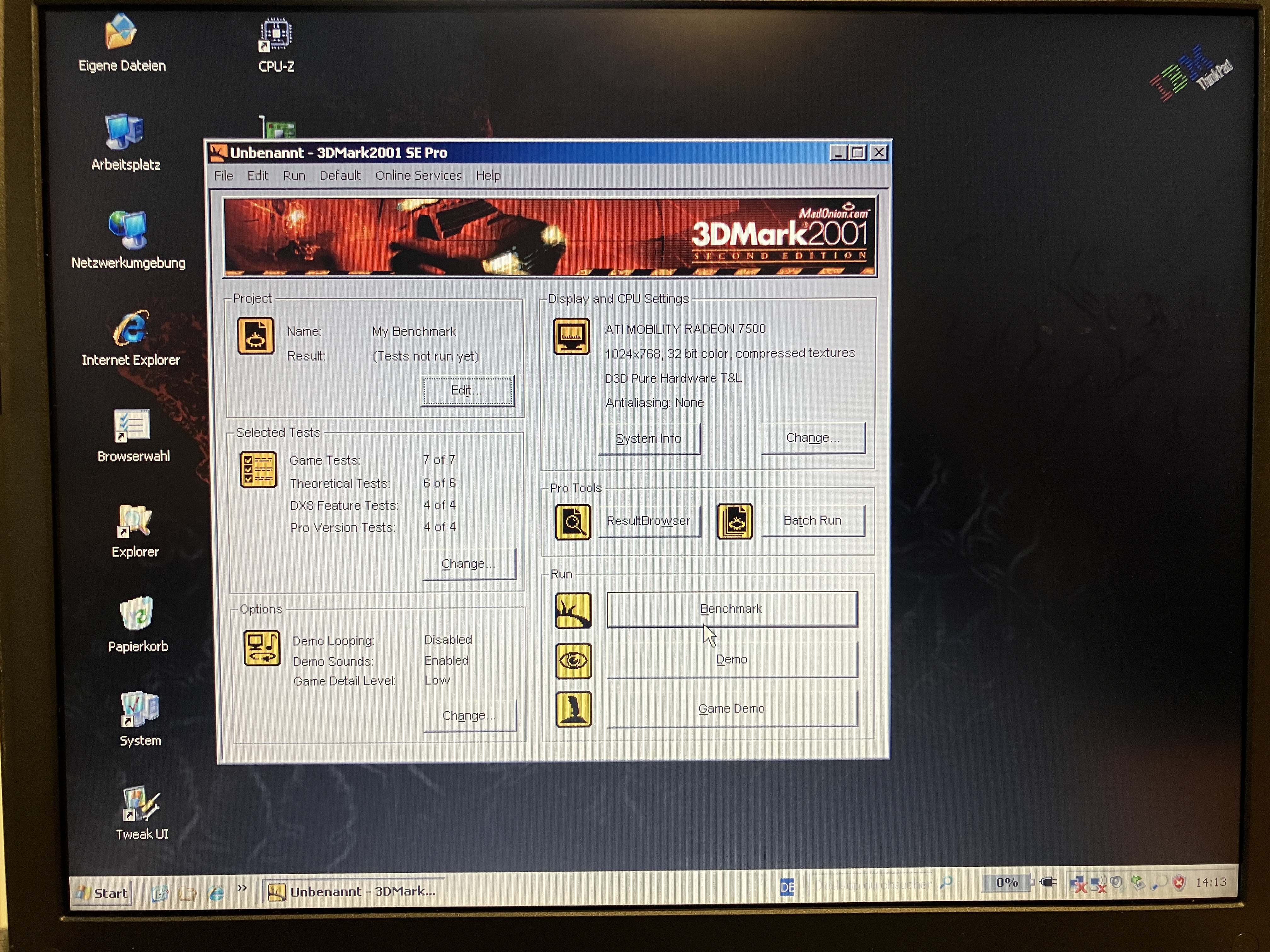 Das Schönste am Ende. Nach der Installation des Acrobat Readers und des DVD Players -> Erfolgt die Installation eines Benchmark Programms. Das T40 wurde laut Thinkwiki