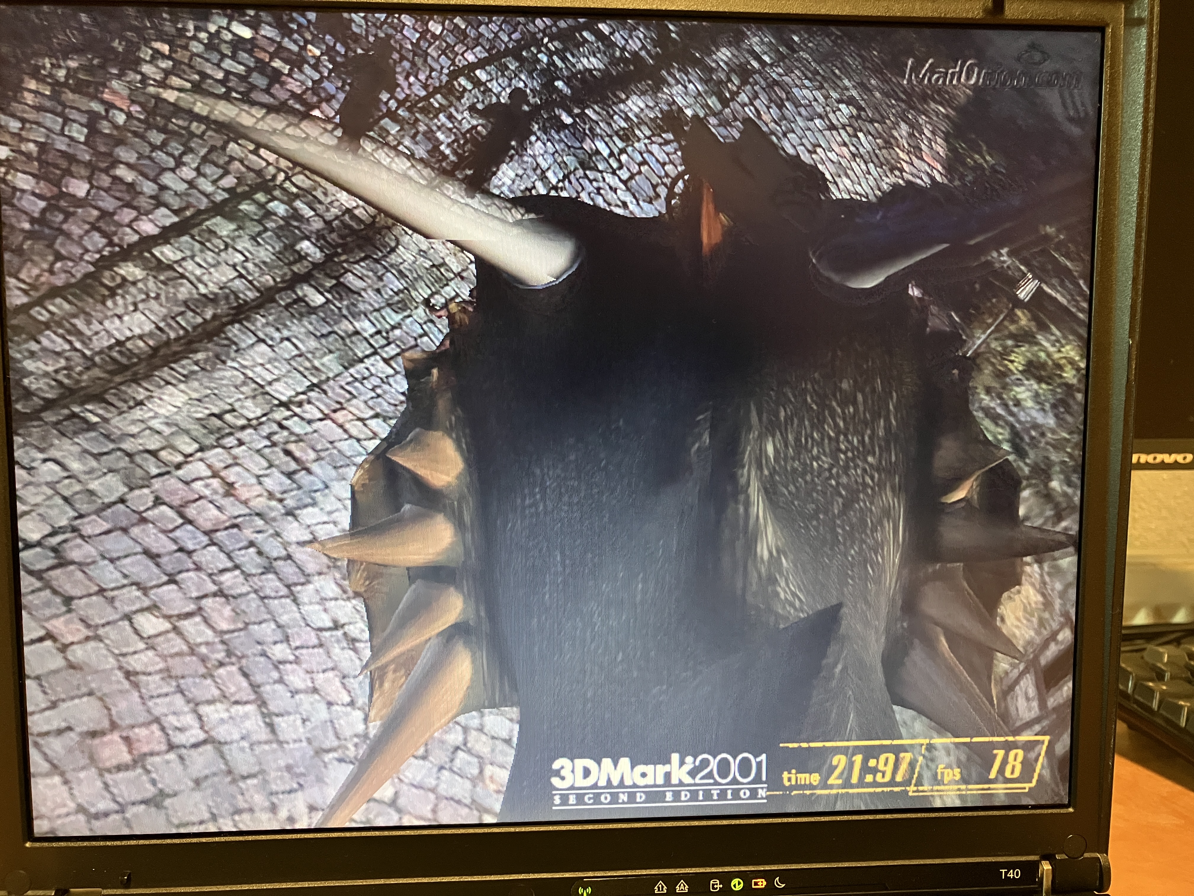 Im 3DMark2001SE schlägt sich das T40 recht wacker dafür, dass es kein Gaming Notebook ist. Zu beachten ist aber, das das Notebook mindestens 2 Jahre jünger ist